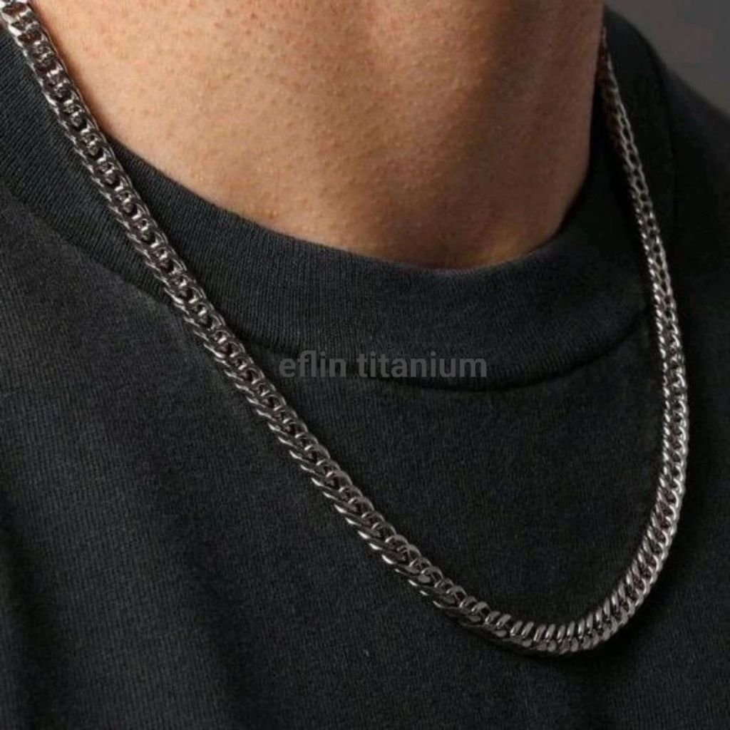 KALUNG TITANIUM PRIA RANTAI RAPAT MODEL MACHO ANTI KARAT DAN TIDAK LUNTUR