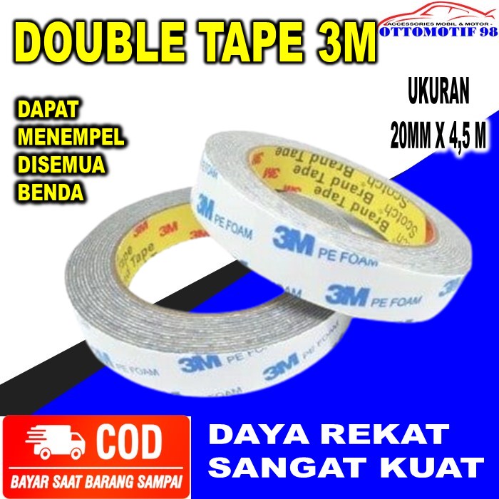 Double Dabel Dobel Doubel Dabeltip Doubeltape Dabeltape Tape Tip Magic Lem Bolak Balik 3M Perekat Aksesoris Interior Exterior Motor Mobil Dinding Rumah Serbaguna Serba Guna Daya Rekat Super Kuat Murah Import Impor Panjang 24mm 2,4 M