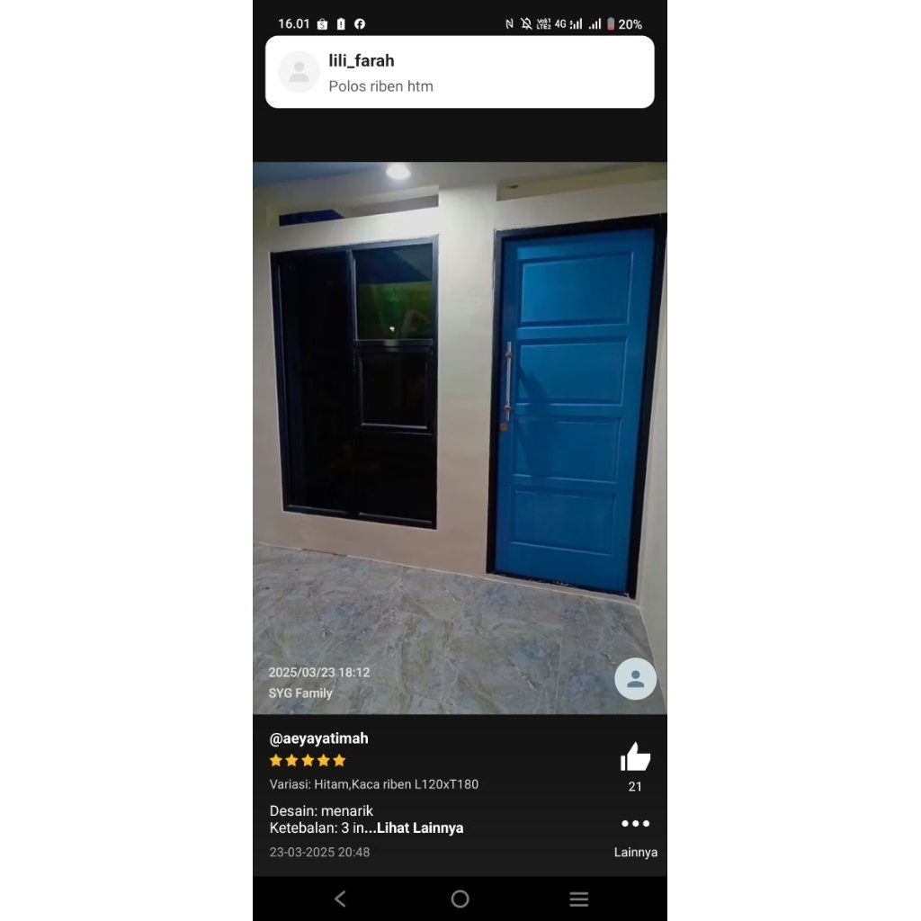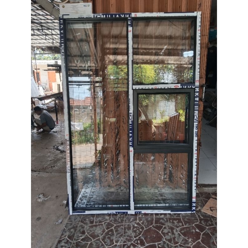 Jendela aluminium kombinasi pilihan L100xT130 dan L120xT180 3 inci sesuai gambar