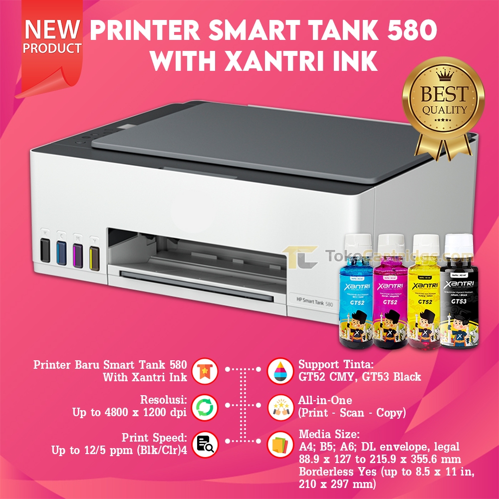 HP Smart Tank 580 Pengganti 515 Wireless All-in-One HP515 (Print, Scan,Copy,Wireless, Bluetooth) New Original