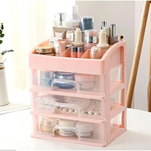 (READY & ORI) Charme Rak Kosmetik Kotak Transparant PINK laci kosmetik viral unik kekinian rak makeup make up rak obat
