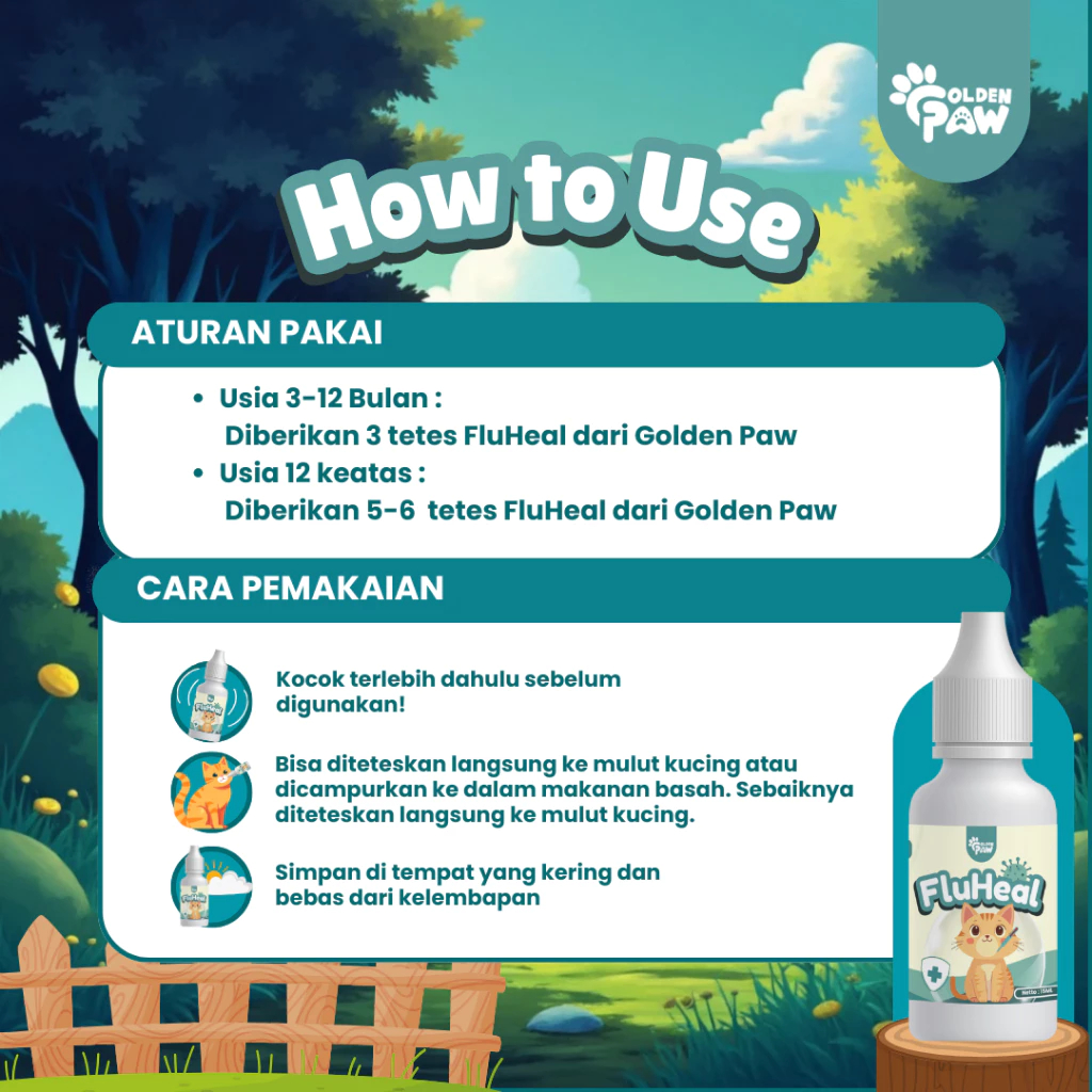 Golden Paw - FluHeal 15ML Obat Anti Flu Pereda Pilek Demam Bersin Anti Flu Tetes Untuk Kucing Sakit Batuk Lemas