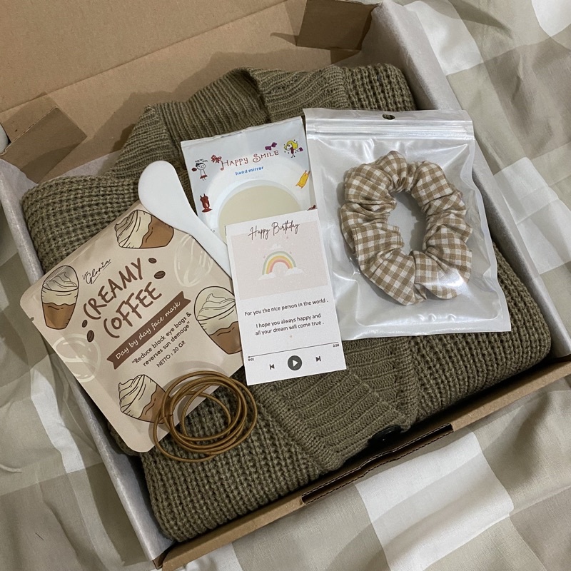 HAMPERS CARDIGAN RAJUT/GIFT ULANGTAHUN/HAMPERS WISUDA/HAMPERS MURAH/HAMPERS AESTHETIC
