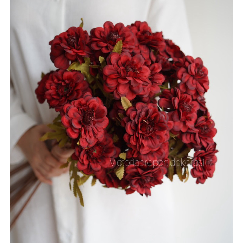 Bunga Artificial Dekorasi Dahlia Pinnata 3 Kuntum no Dekorasi