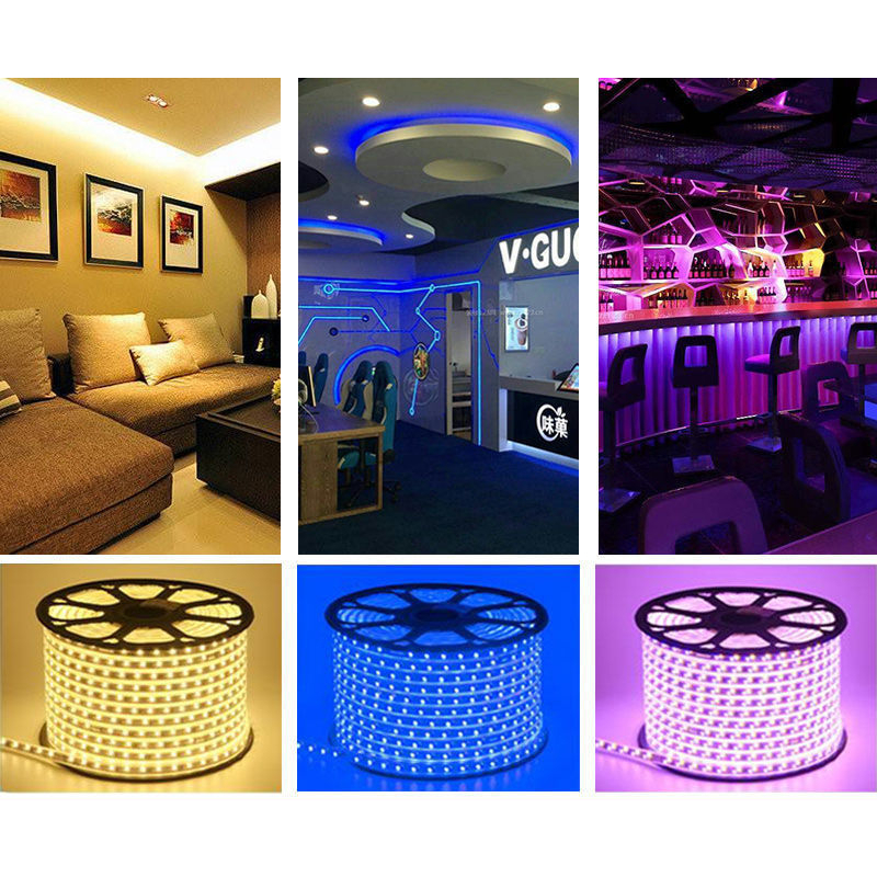 Lampu Led Strip 5730 Flexible drop ceiling light Gel Selang Waterproof Outdoor Hias Gapura 17 Agustus IP65 220V AC Socket colokan 2 Mata Rapat Plafon Cahaya Kuning Warm White WW 3000K Merah Red Putih 6500K Hijau Green Biru Blue Permeter Meteran Ecer