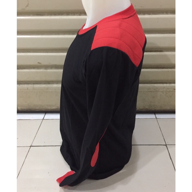 kaos hitam lengan panjang/kaos hitam tambal merah lengan panjang
