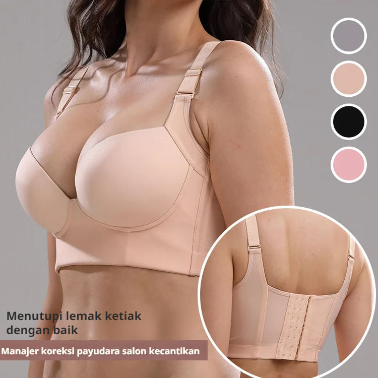 [BARANG KEDUA SETENGAH HARGA] Bra Puting Push-Up Bra V Dalam Mulus Mengkilap Bra Olahraga Kawat Memori Mulus Glossy Non-Marking Deep V Bra 8 rows of snaps /bha wanita push up beha kawat busa tebal