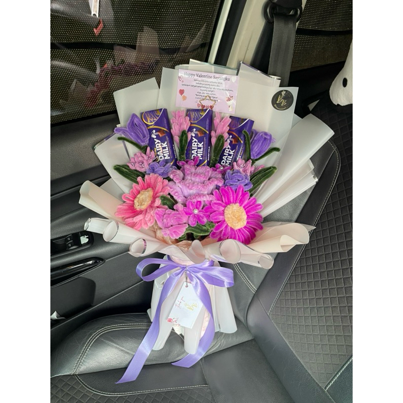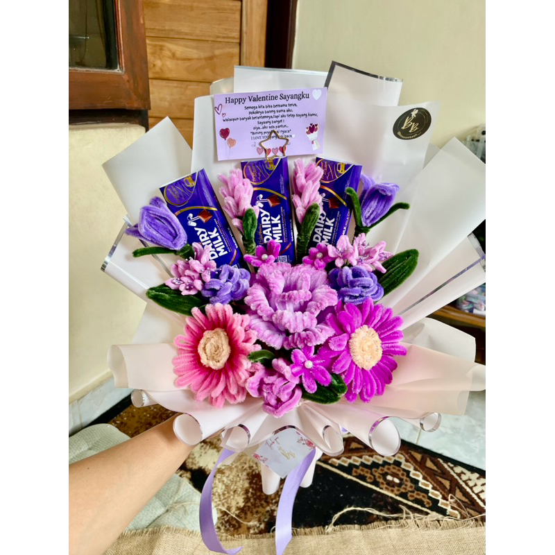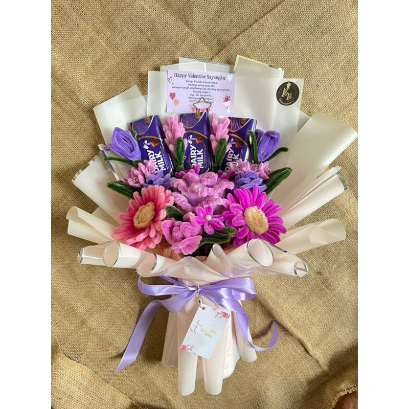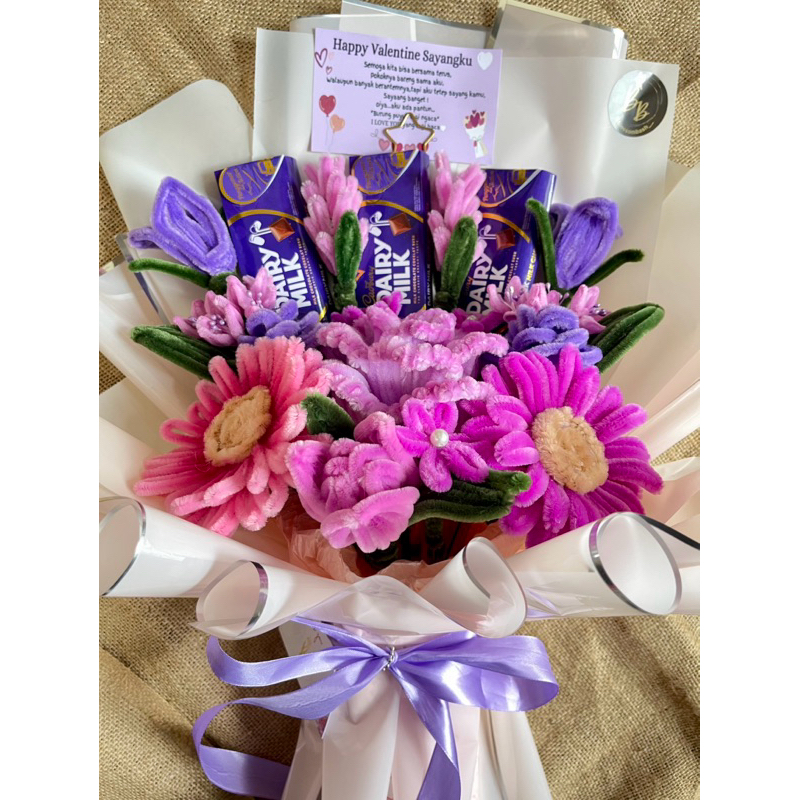 buket bunga kawat bulu coklat special request pipe cleaner bouquet
