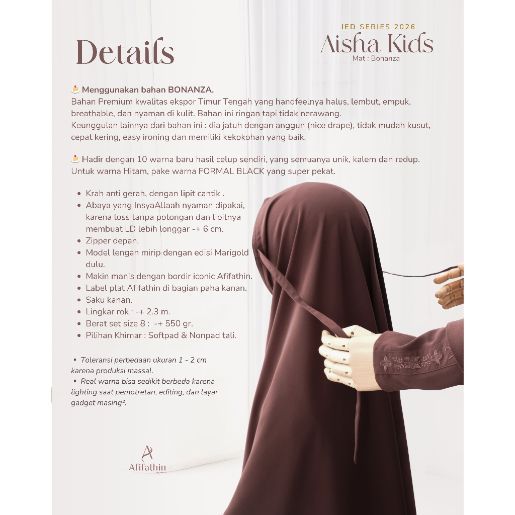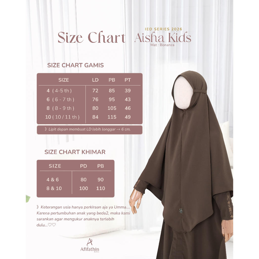 Afifathin ~ AISHA Kids Khimar Only Bahan Bonanza / Softpad Nonpad Khimar Anak Lebaran Nyaman