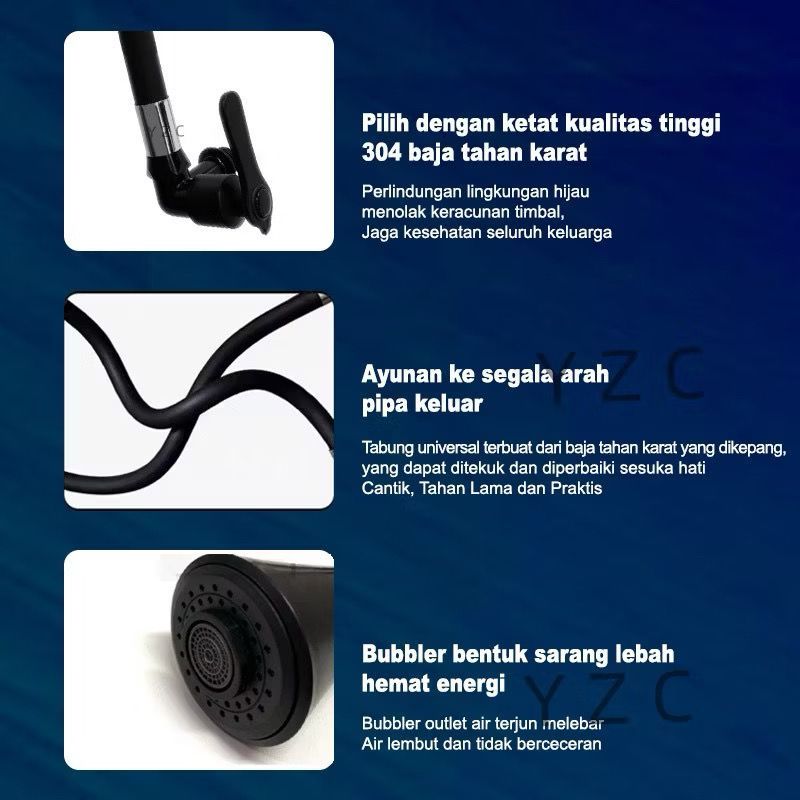 SUS304 Kran Angsa Fleksibel Kran Cuci Piring Hitam Kran Cuci Piring Dinding Anti Karat Promo Harga Agen/Penyesuaian air keluar
