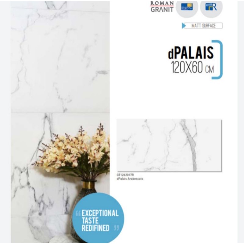Roman Granit Big Slab 120x60 dPalais Arabescato / Granit Roman Lantai Motif Marmer / Granit Roman Dinding Motif Marmer / Granit Lantai Putih / Granit Lantai Marmer / Granit Lantai Besar / Lantai Big Slab Putih Marmer / Granit Dinding Putih Minimalis