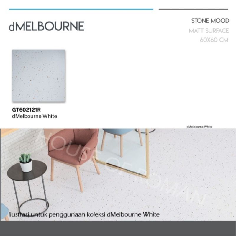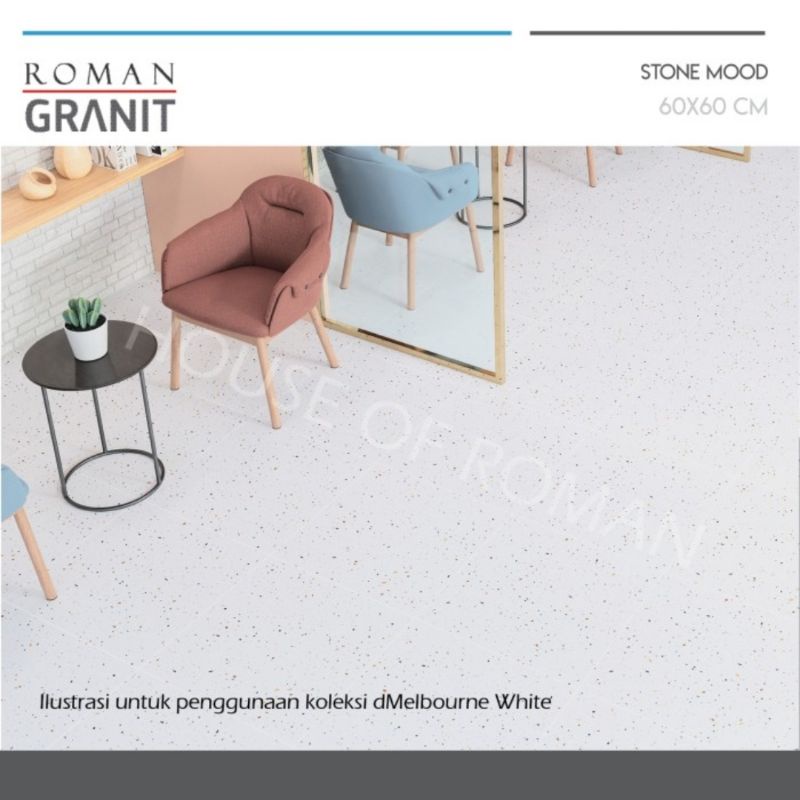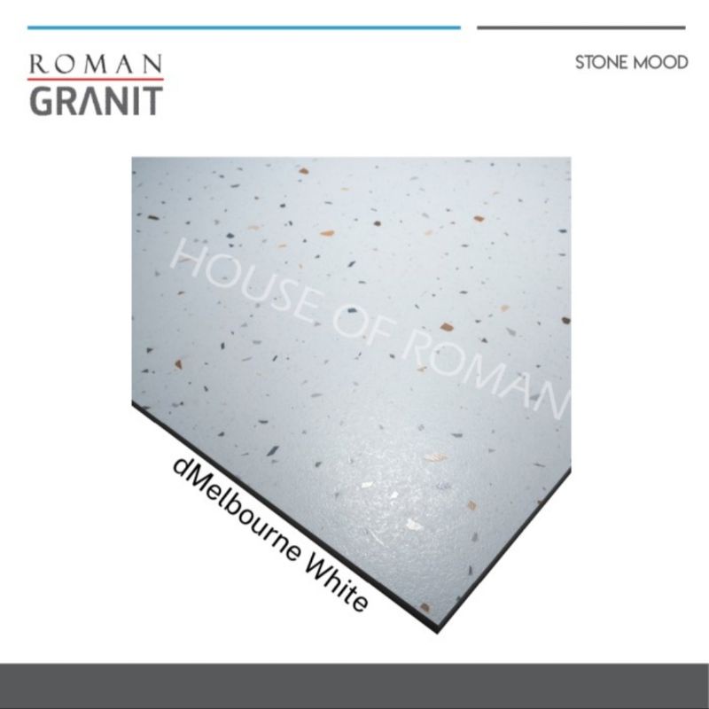 Roman Granit 60x60 (Stone Mood / Trazo) dMelbourne White / Granit Roman Motif Trazo/Terazo/Teraso / Granit Motif Putih / Lantai Ruang Tamu Putih / Lantai Kamar Tidur Putih / Granit Motif Jadul / Lantai Rumah Murah / Lantai Rumah Promo
