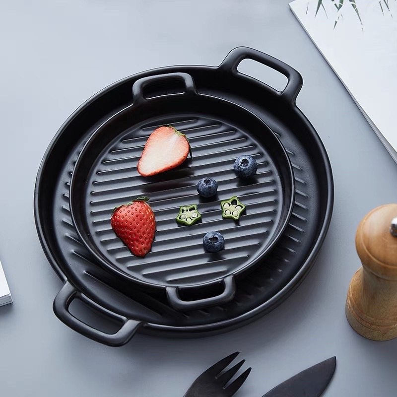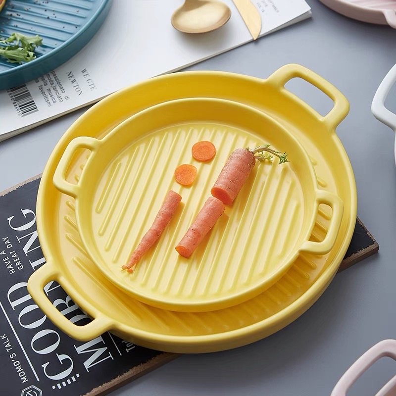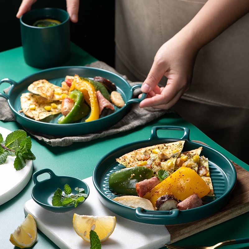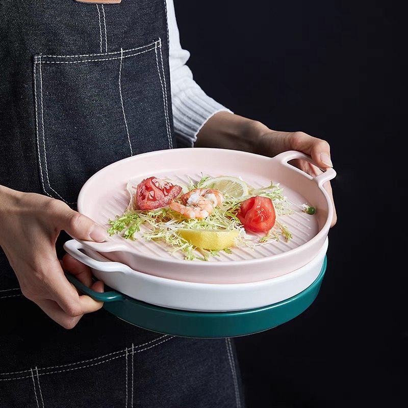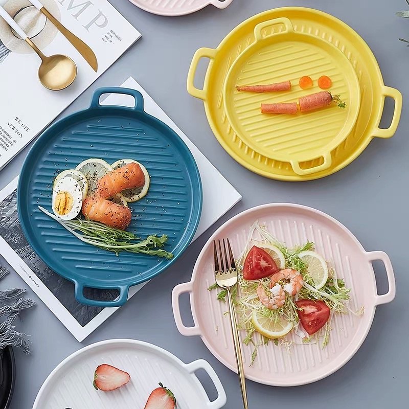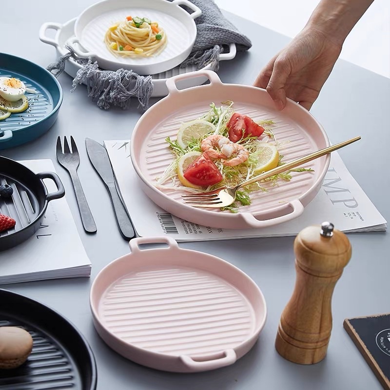 Ceramic Plate Handle / Piring Keramik Nordic Style dengan gagang / Baking Ceramic Tray / Steak Ceramic Tray / Piring Saji Tahan Panas