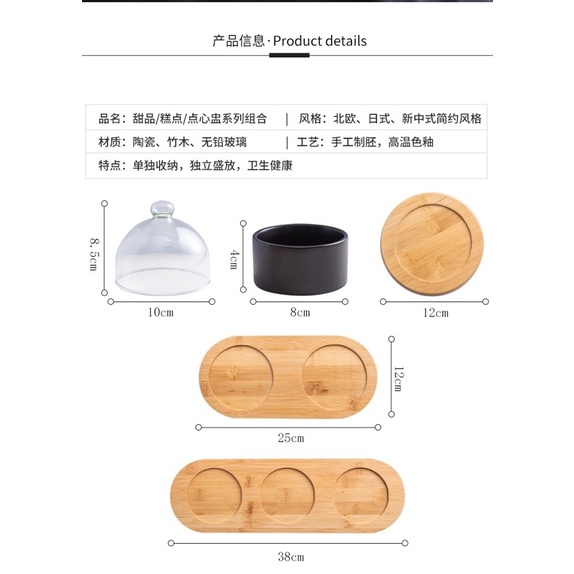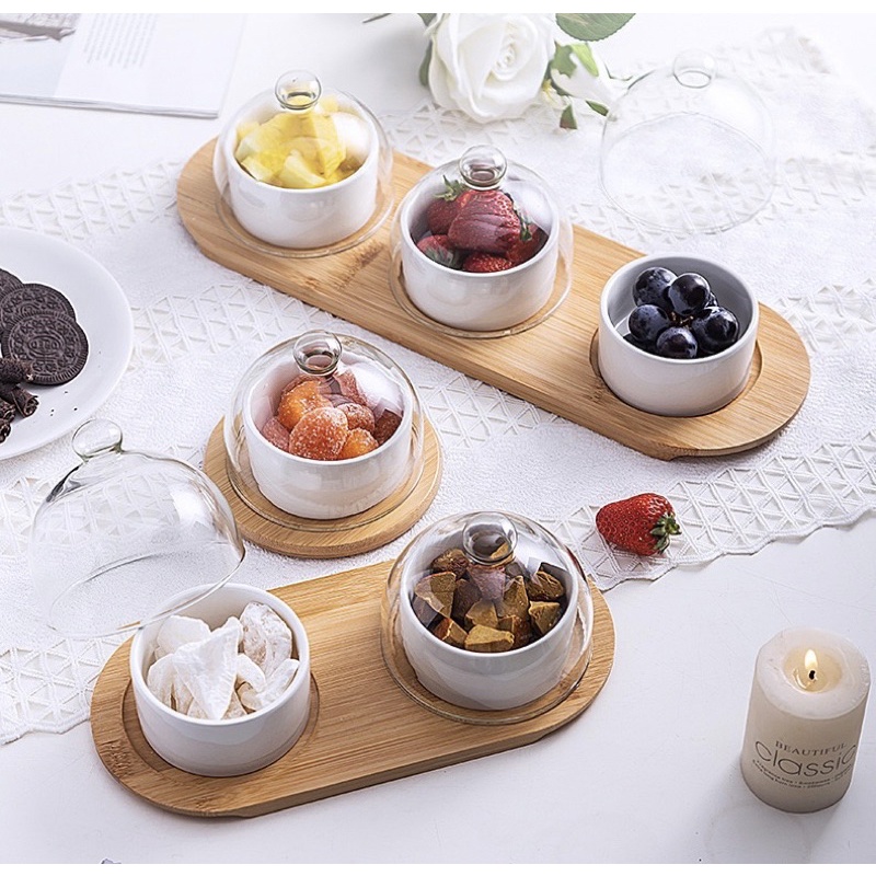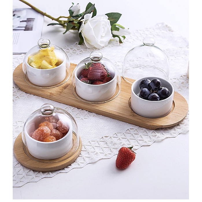Dessert Cake Wooden Tray Glass Dome / Tempat Kue / Tempat Dessert dengan Tutup Kaca Nordic Estetik