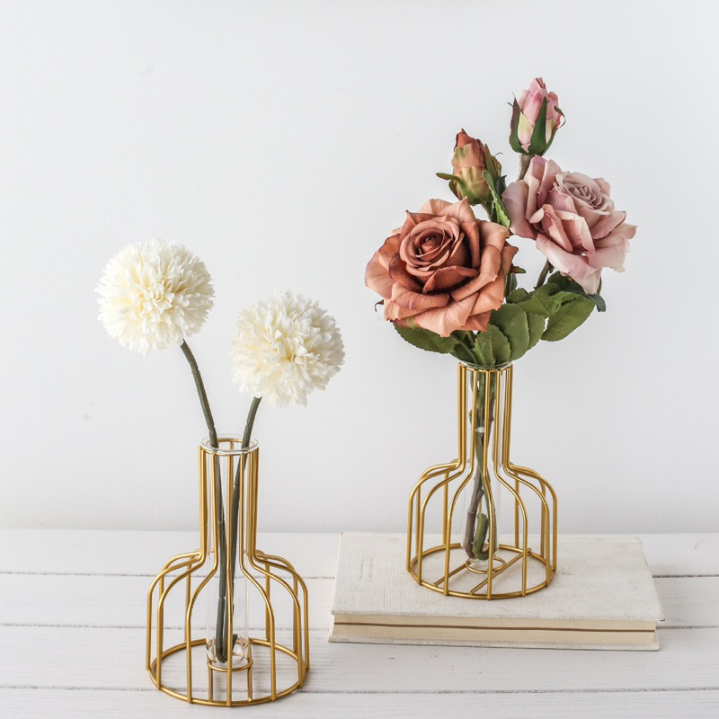 Vas Bunga Skandinavian Hidroponik Besi Include Kaca Nordic Aesthetic / Dekorasi Meja / Hiasan Rumah
