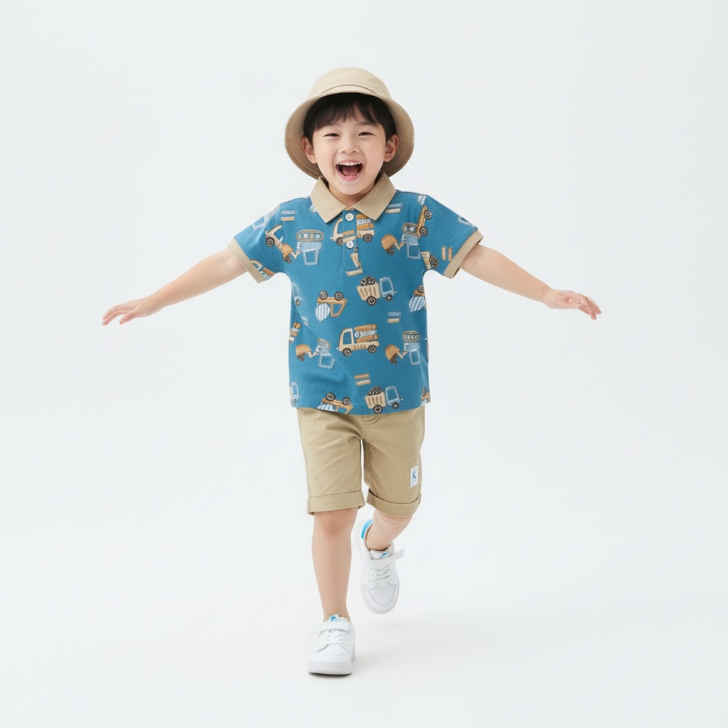 Kennai Baju Setelan Wangki Onset Anak Perempuan & Laki Laki Series Truck And Digger Usia 1-12 Tahun