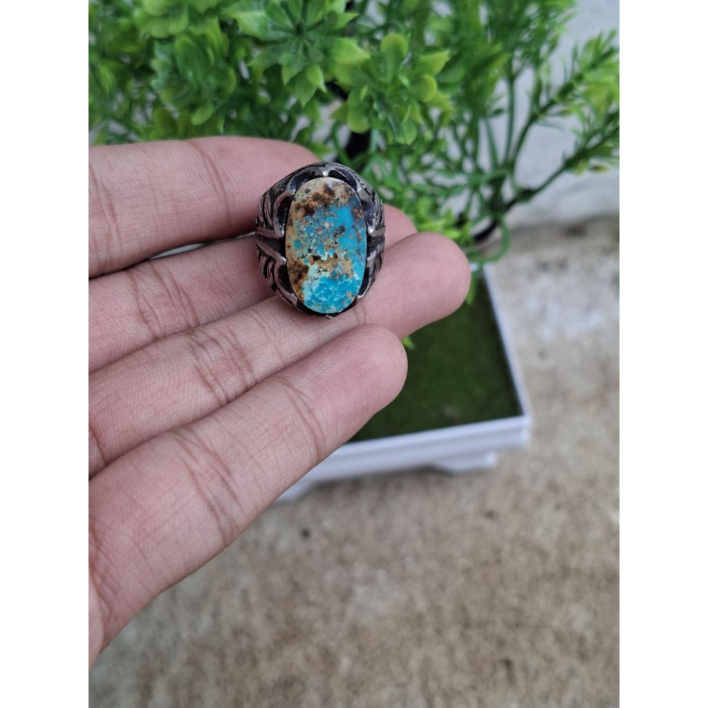PIRUS PERSIA BLUE SERAT EMAS RING ALPAKA MODEL CAKAR