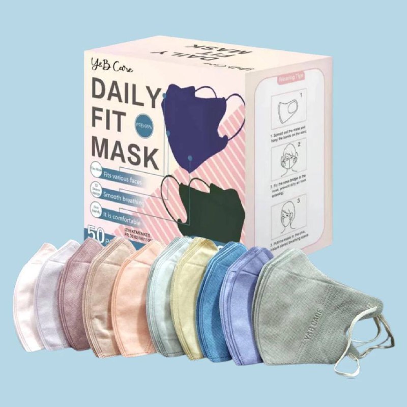 MASKER DUCKBILL GARIS MIX WARNA Y&B FACEMASK 1BOX ISI 50PCS
