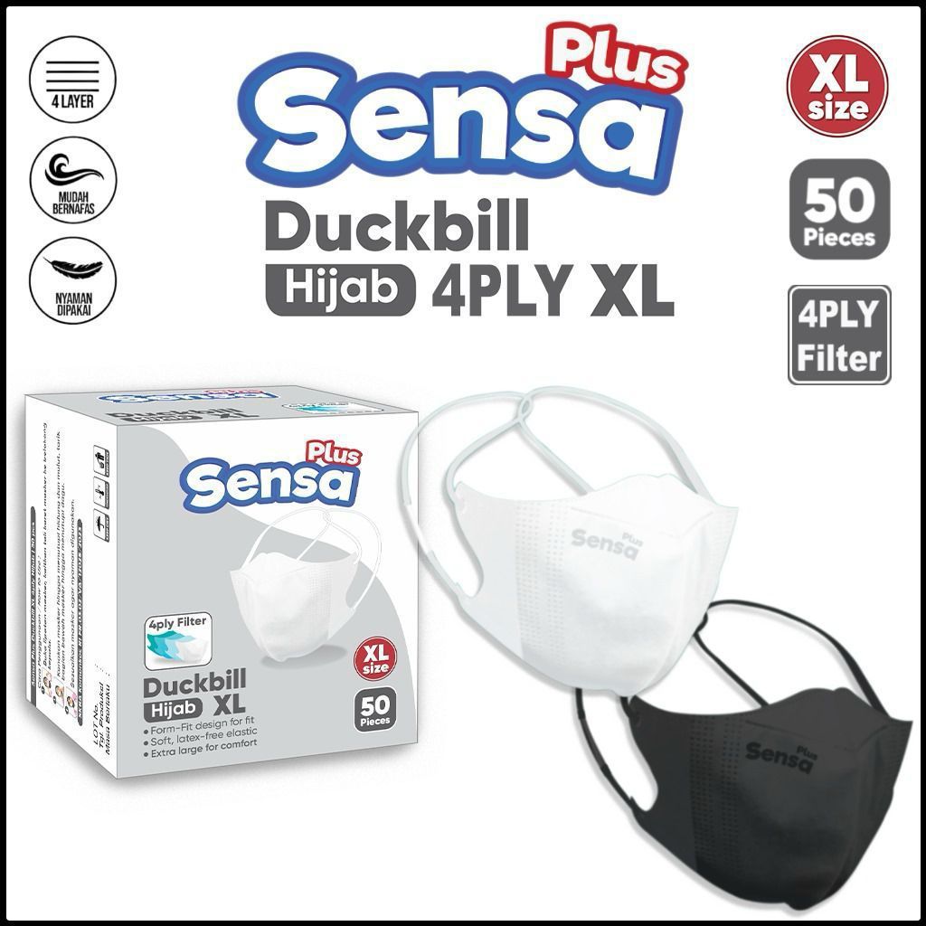 MASKER DUCKBILL HIJAB SENSA 4PLY XL / MASKER HIJAB TEBAL 50PCS/BOX PART 3