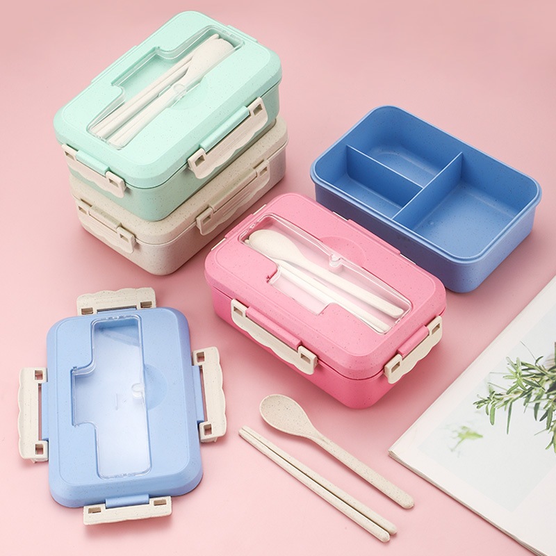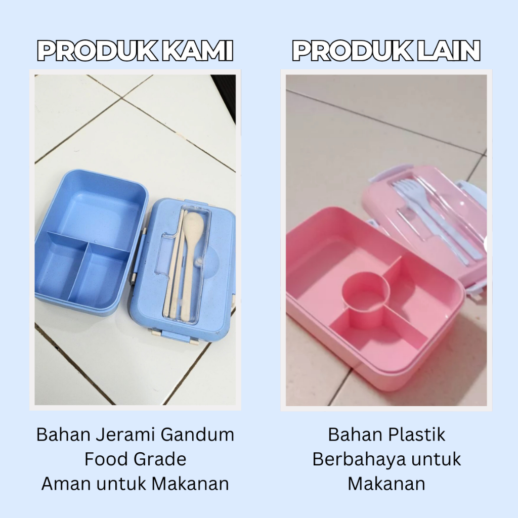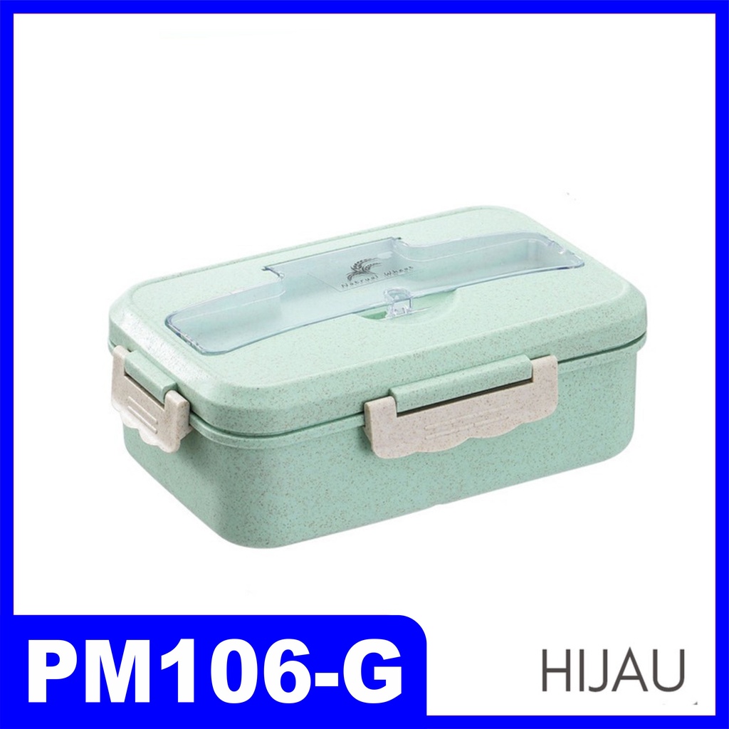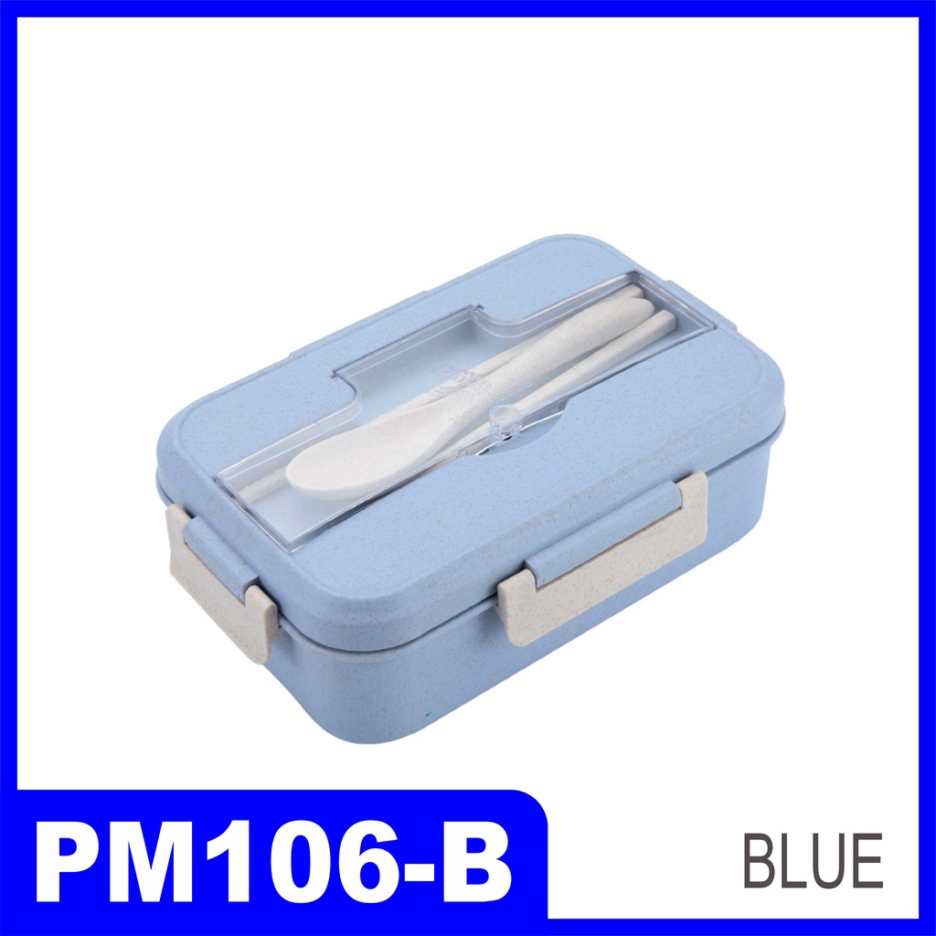 Paus Biru - Kotak Bekal Makan Siang Jerami Gandum 1000ML | Lunch Box Set Alat Makan