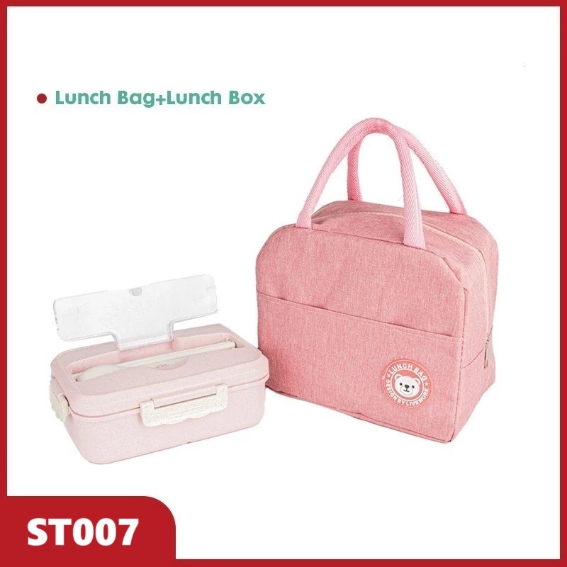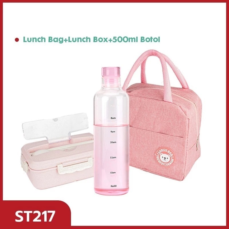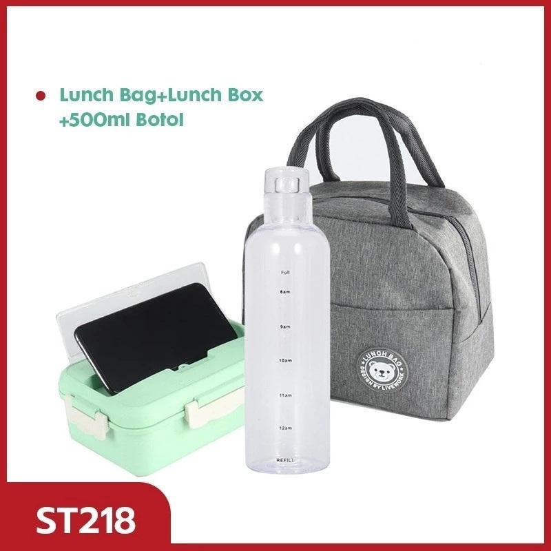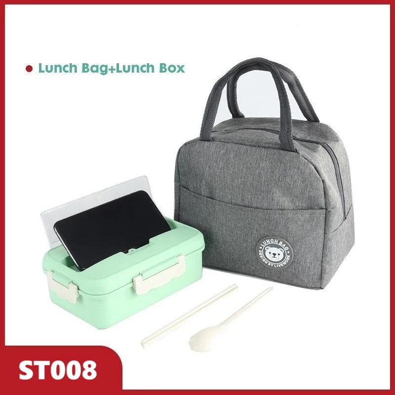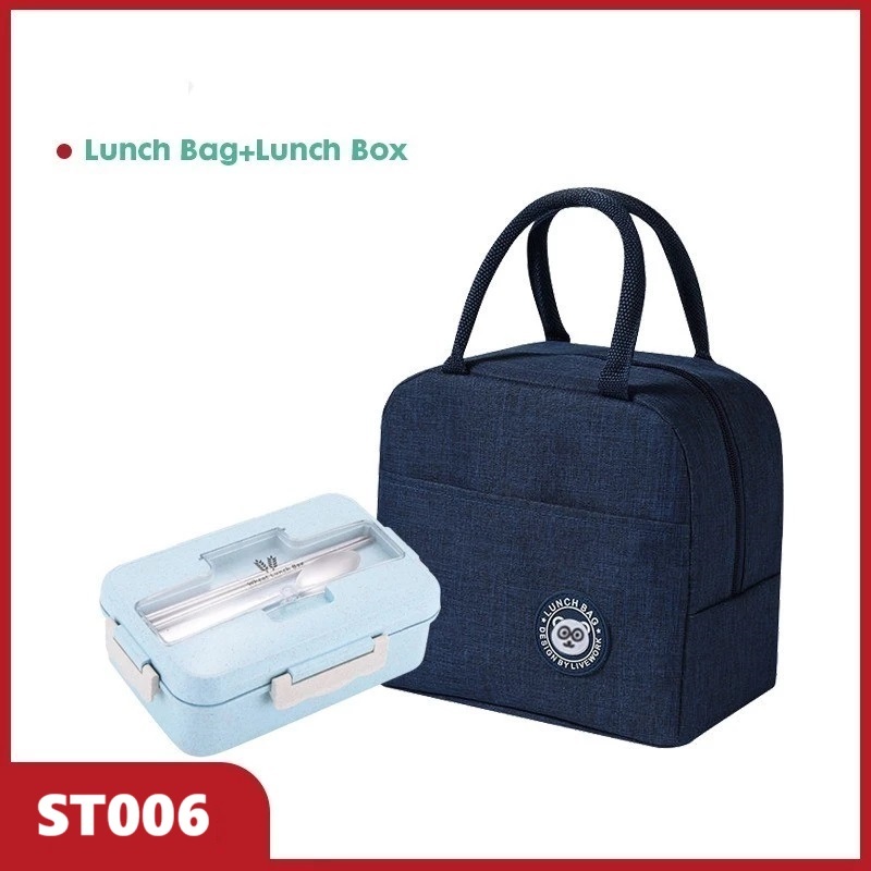 Paus Biru - Kotak Bekal Makan Siang Jerami Gandum 1000ML | Lunch Box Set Alat Makan