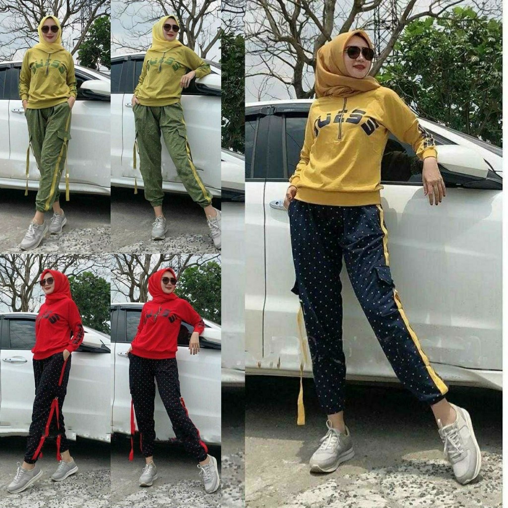 Baju Setelan Guess 2in1 Jumbo Setelan Training Olahraga Big Size | Pakaian Stelan Celana Wanita
