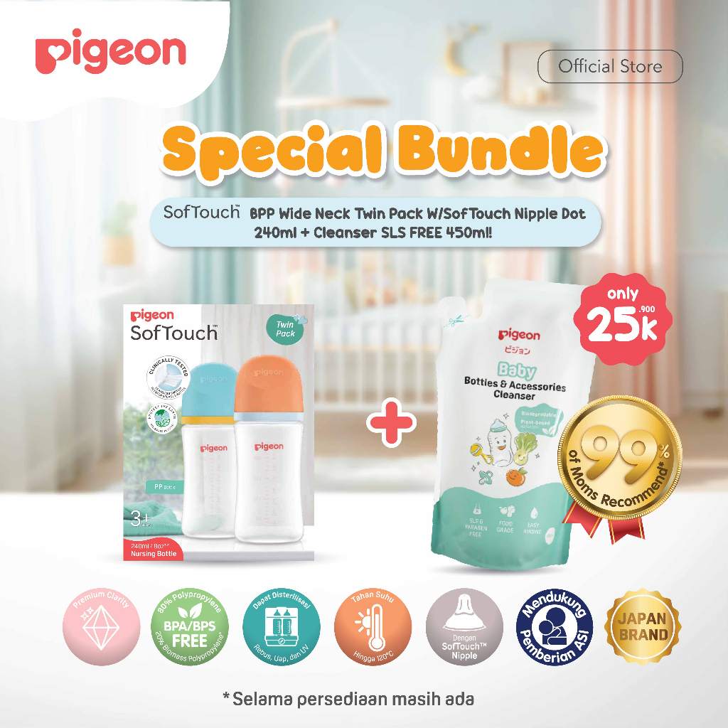 PIGEON B1G1 Botol BPP Wide Neck w/ SofTouch Nipple | Botol Twin Pack | Pilih Variasi | Botol Susu Bayi | Botol Susu Newborn | Ramah Lingkungan | Anti Kolik | Anti Kembung | Nipple Dot Lembut & Elastis | Dot Seperti Payudara Ibu