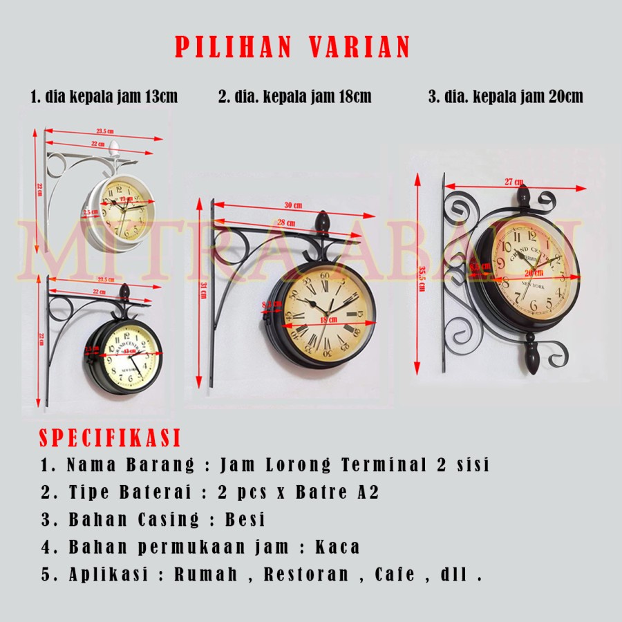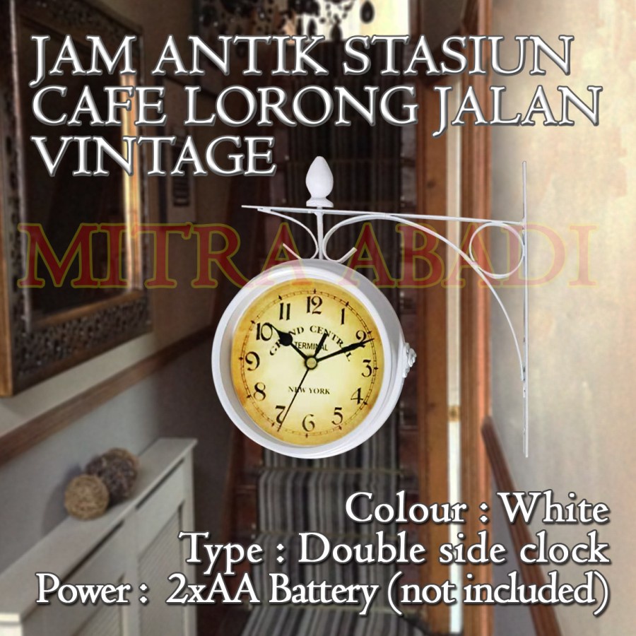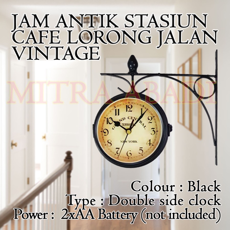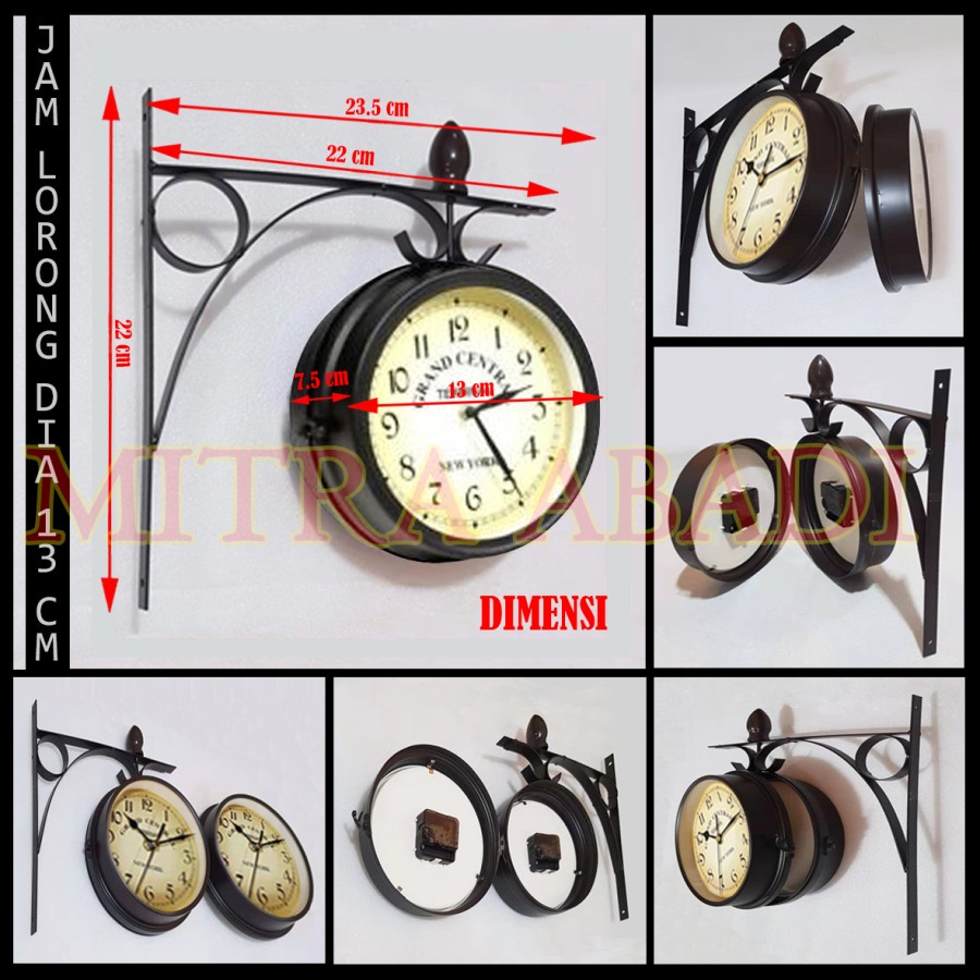 Jam Antik Dinding Stasiun Cafe Lorong Jalan Vintage Model 2 Sisi MINI DIAMETER 13 CM
