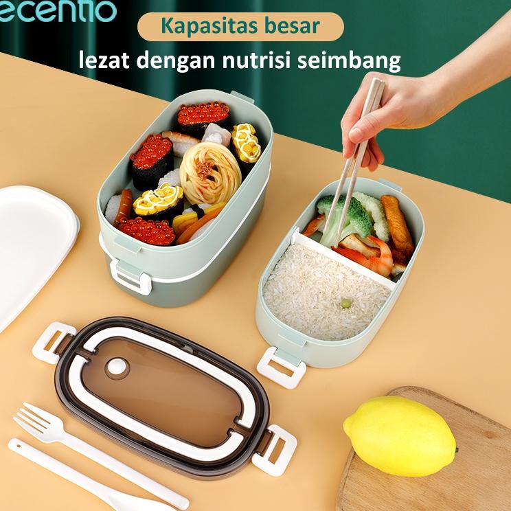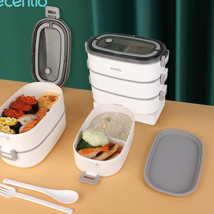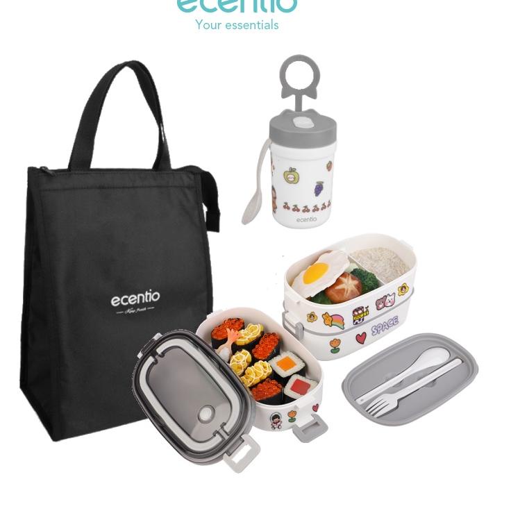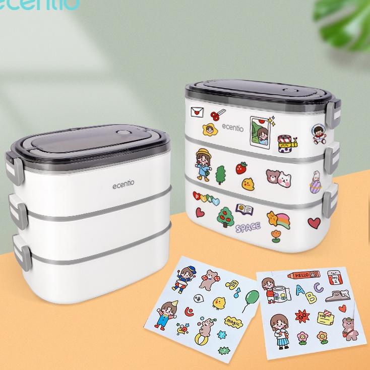 Paket Surprise ecentio Kotak Makan set 3 Susun lunch box tas 2400ml/besar putih tempat makan bento set/500ml botol Air minum/mangkuk sup/tas aluminium foil lunch bag
