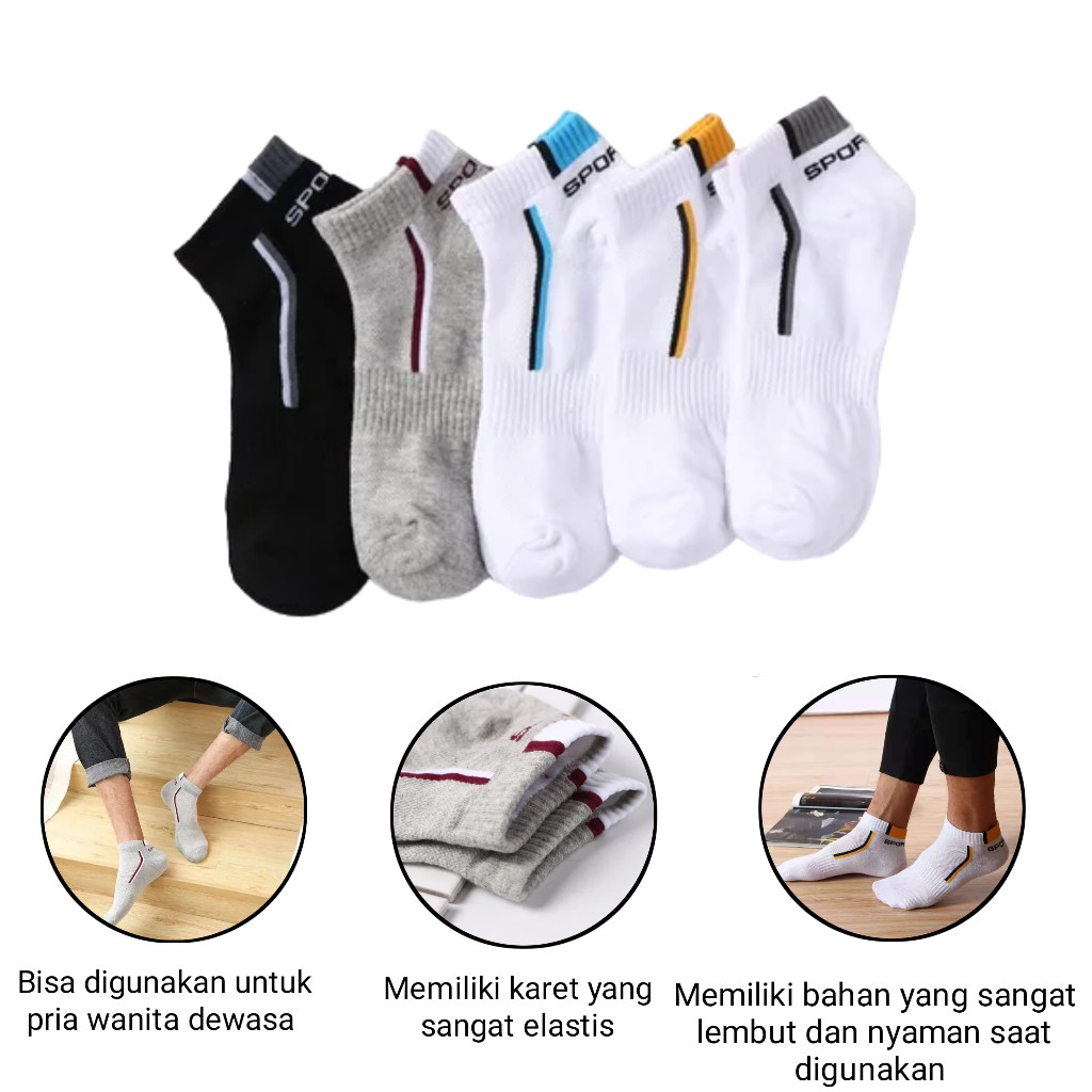 (3 PASANG) New Sport kaos kaki pendek pria wanita / kaos kaki olahraga