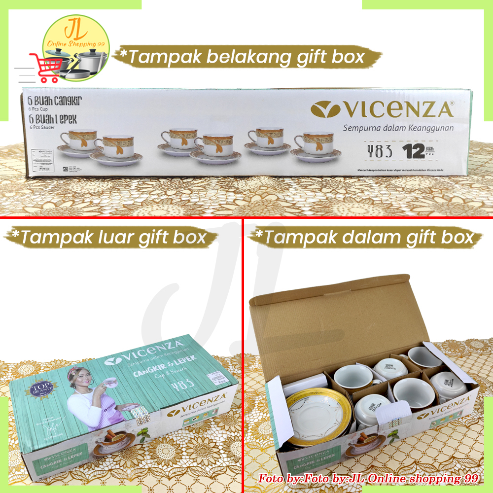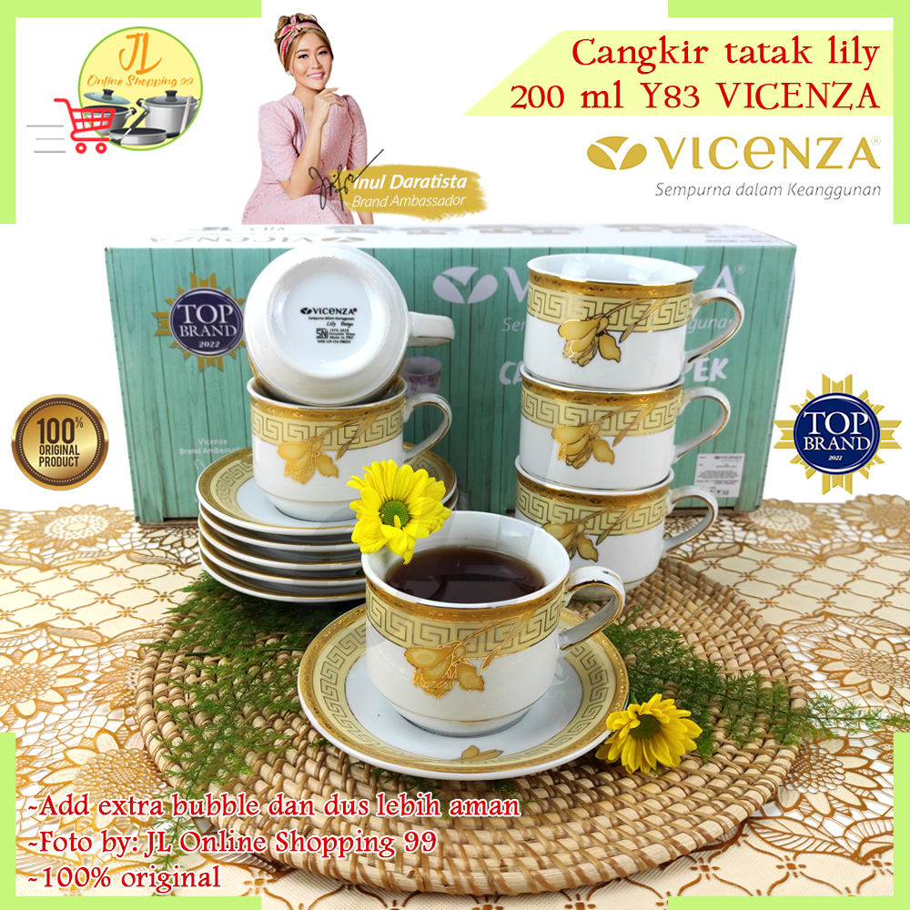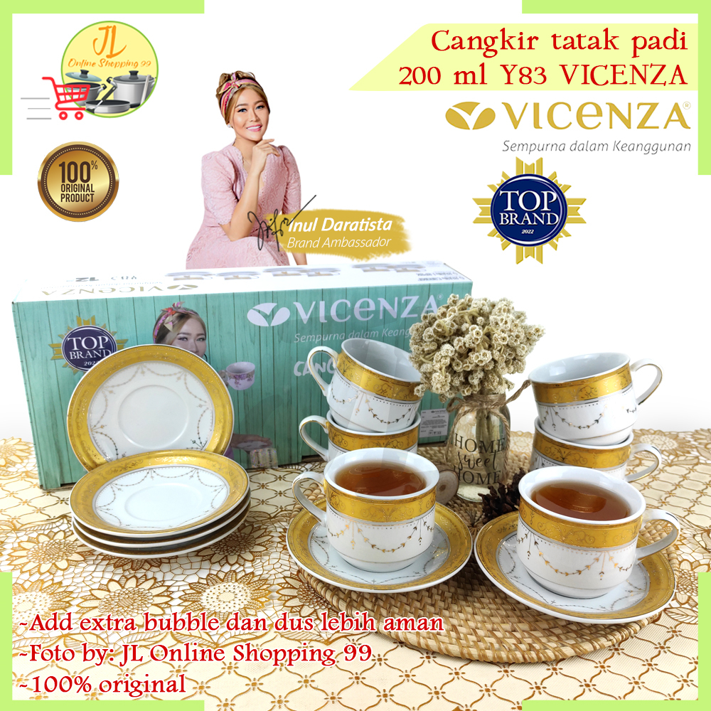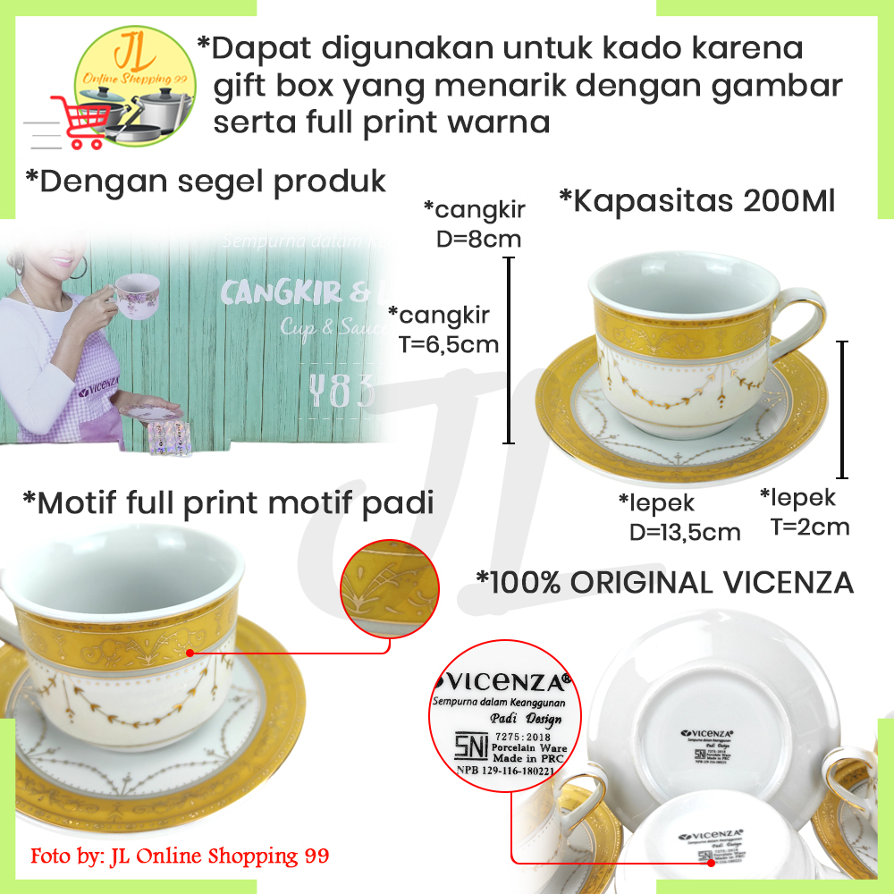VICENZA cangkir set 6 pasang motif padi Y-83 / tea set cup and saucer porcelain