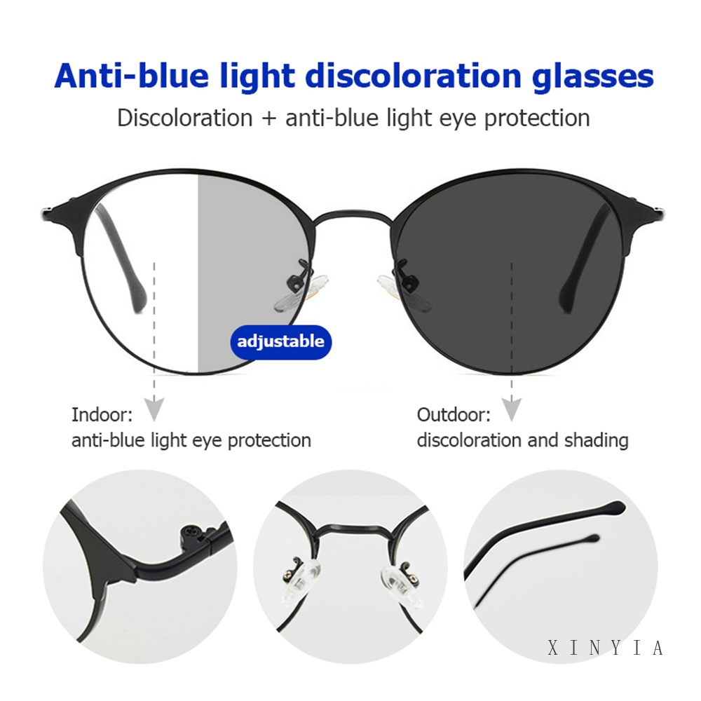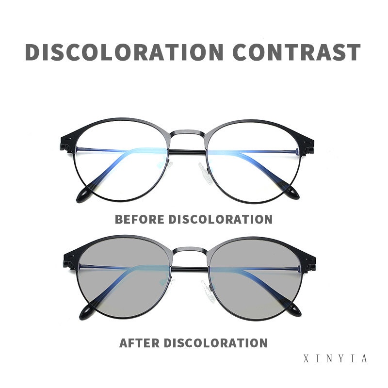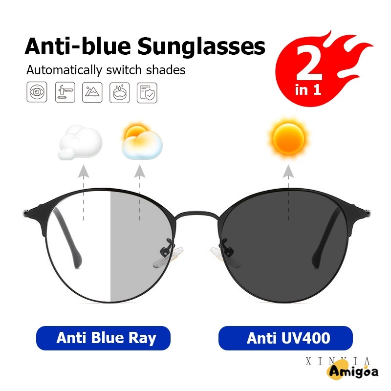 [2 In 1 Photocromic] Kacamata Lensa Photocromic Anti Blue Ray Radiasi Wanita Korea Besi Frame Kacamata Komputer Anti Silau 2 In 1 Potocromic Fotocromik Fashion Anti Sinar Matahari UV400 Kaca Mata Hitam - AG2
