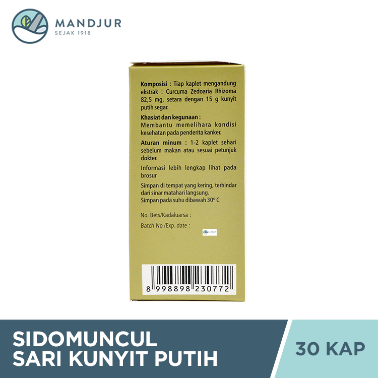 Sido Muncul Sari Kunyit Putih 30 Kaplet - Suplemen Imunitas untuk Kanker / Tumor