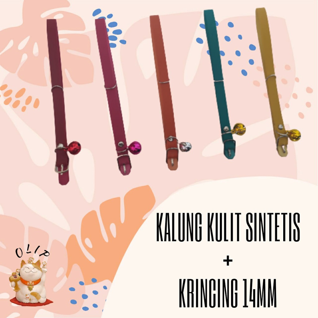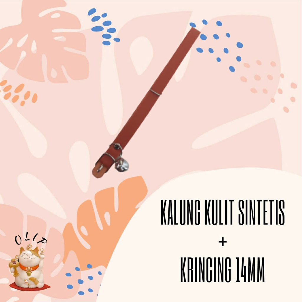 KALUNG KUCING KULIT SINTETIS lonceng 14 mm kalung aksesoris kucing hewan peliharaan anjing kucing kelinci