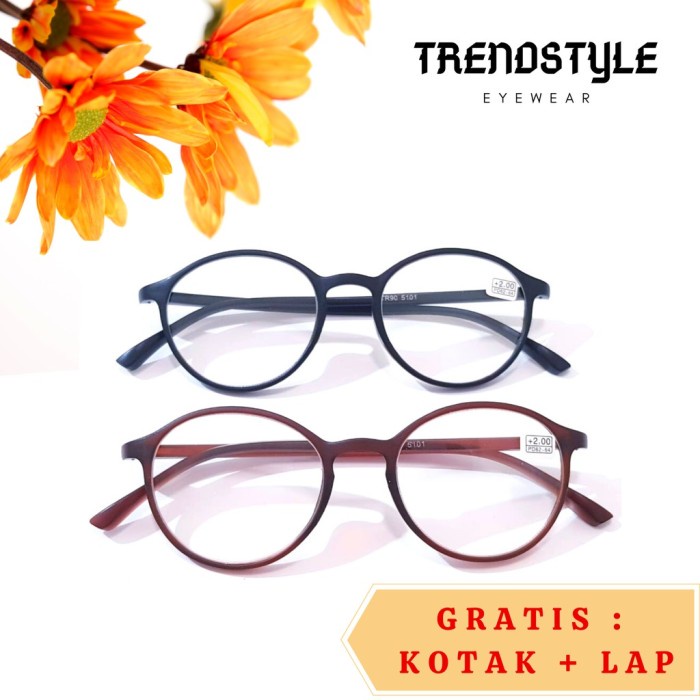Kacamata Rabun Dekat Pria Wanita Plus Baca Bulat bahan TR untuk- 5101 - Hitam, +1.00
