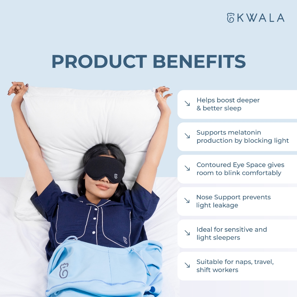 KWALA Night Serene Eyemask 100% Gelap & Nyaman | Penutup Mata Tidur Gelap Total | Sleeping Mask | Eye Mask Anti Cahaya | Travel Sleep Mask | Deep Sleep Mask | Penutup Mata Pesawat | Power Nap | Eyemask Nyaman | Sleepmask | Travel | Deep Sleep