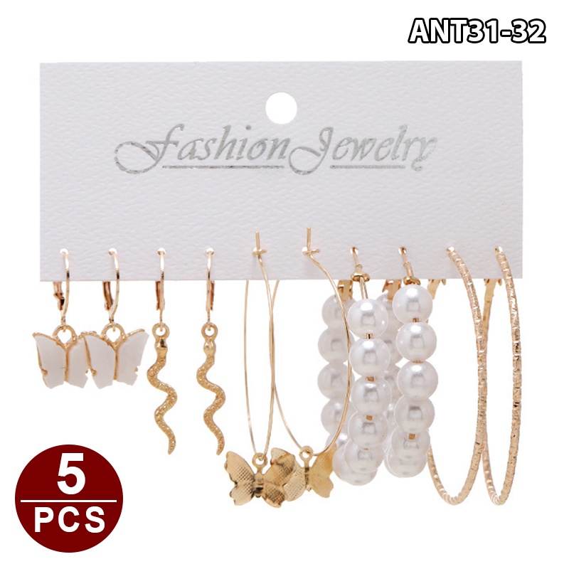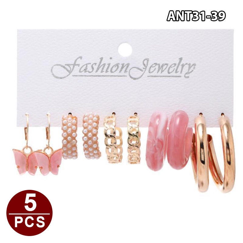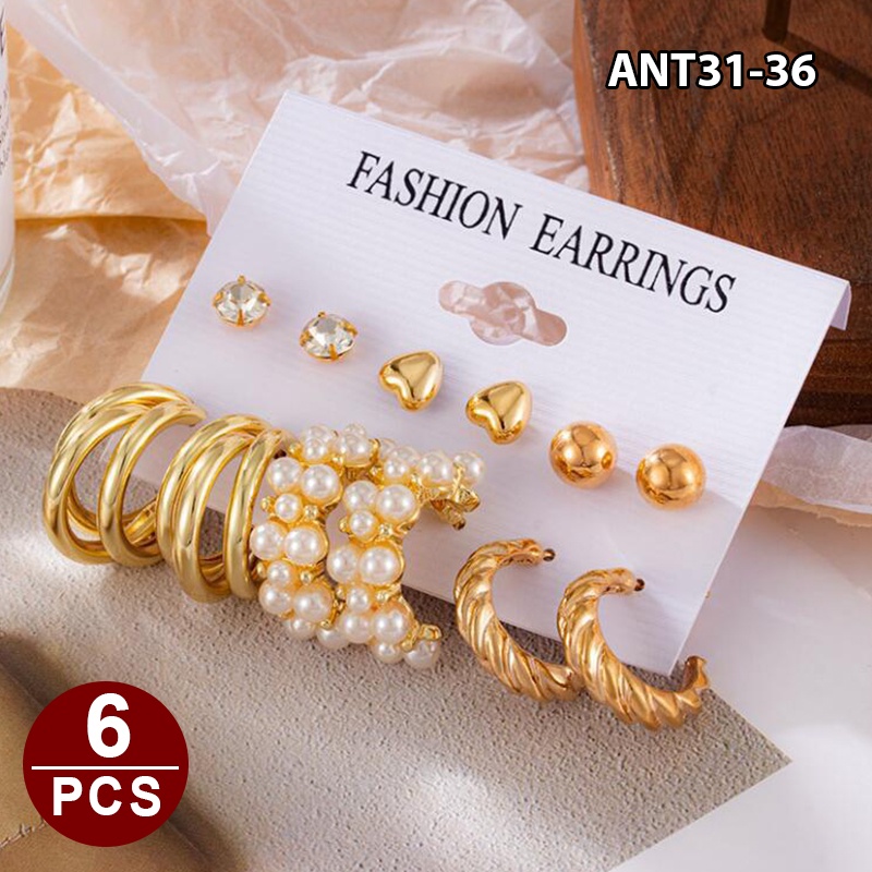 (6Pasang 1set) Anting Wanita korea/ Set anting fashion korea Tusuk Gantung Desain Geometri Hias Rumbai Alloy IMPORT Wanita korea ANT31