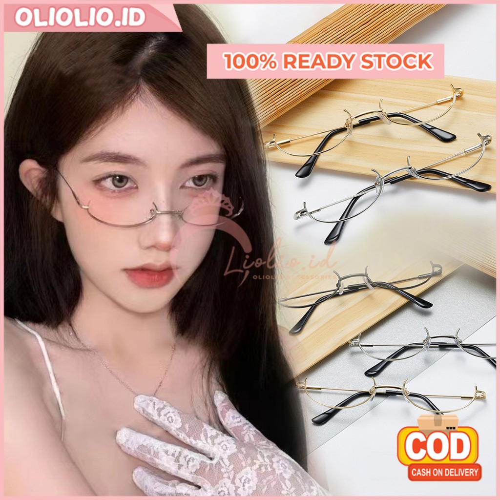 Kacamata Setengah Bingkai Pendant Frame Half Aksesoris Fashion Wanita Korea Tanpa Lensa