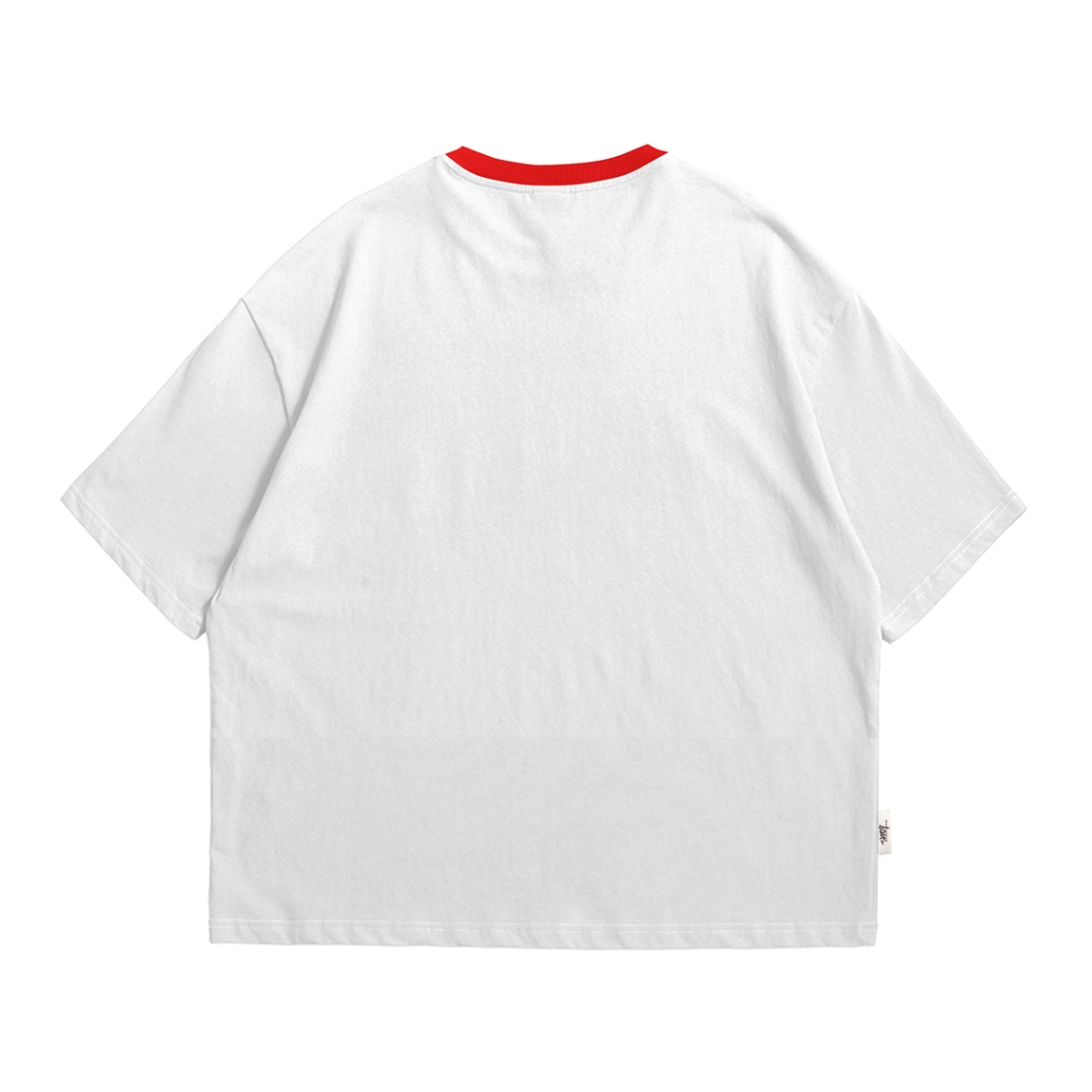 oms Project Kaos Boxy Oversized Red Cherry White Unisex - Cotton Combed 20s - Ringer Tee