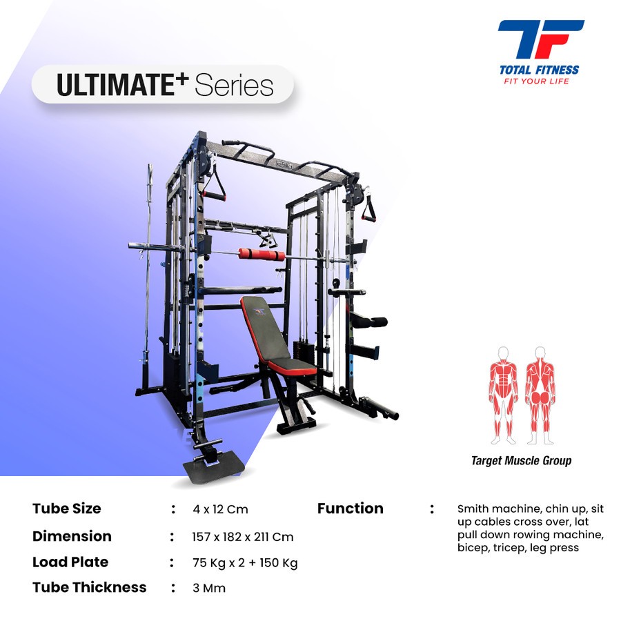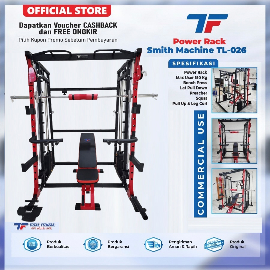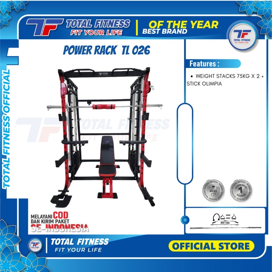 TOTAL - New Alat Latihan Beban Olahraga Fitness Gym Multi Gym Power Rack TL 026 Beban 75 Kg & Stick
