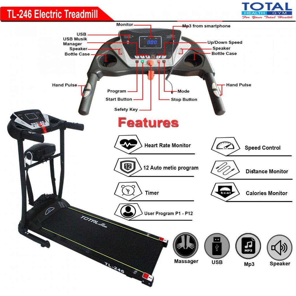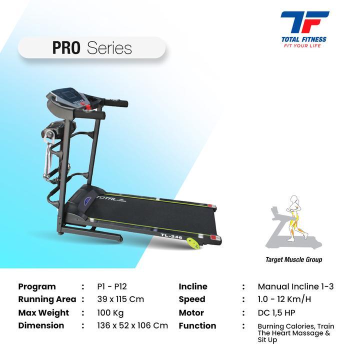 TOTAL - New Alat Olahraga Fitness Gym Sport Cardio Walking Pad Treadmill Listrik Elektrik TL 246