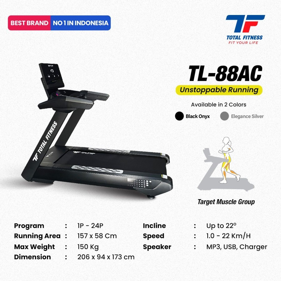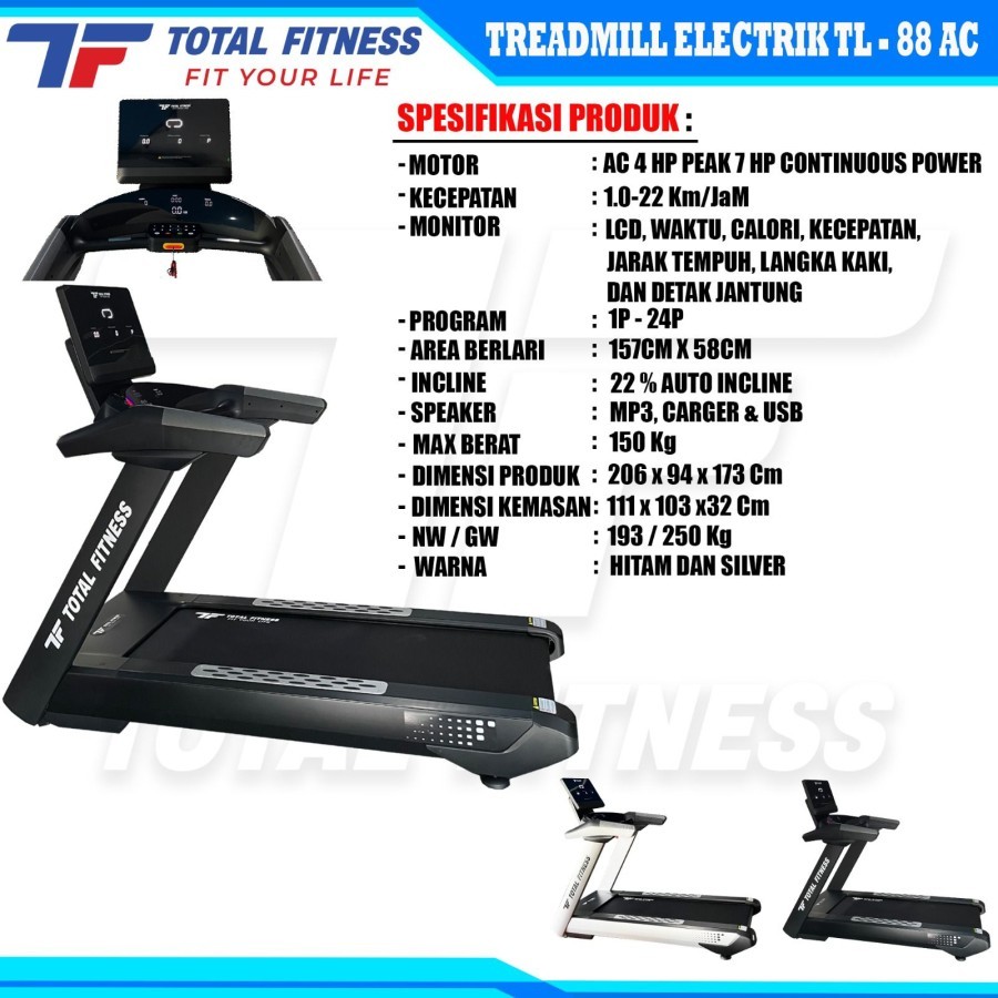 TOTAL - New Alat Olahraga Gym Fitness Big Commercial Treadmill Elektrik Listrik Total TL 88 AC