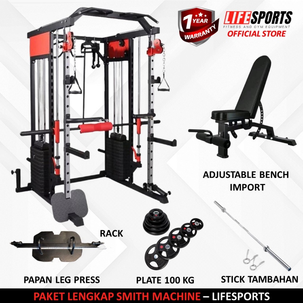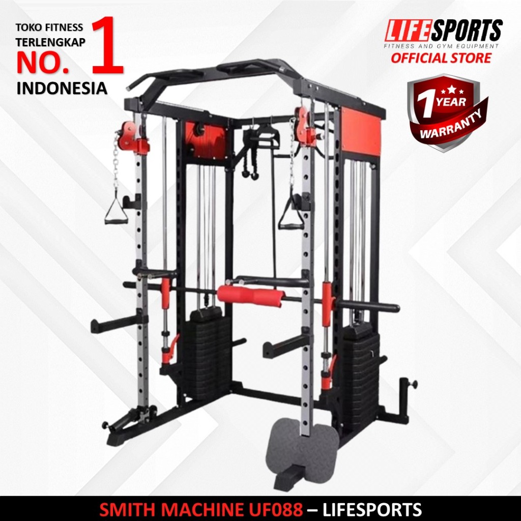 LIFESPORTS - New Alat Olahraga Fitness Gym Smith Machine Beban Tumpuk Cable Crossover UF 088