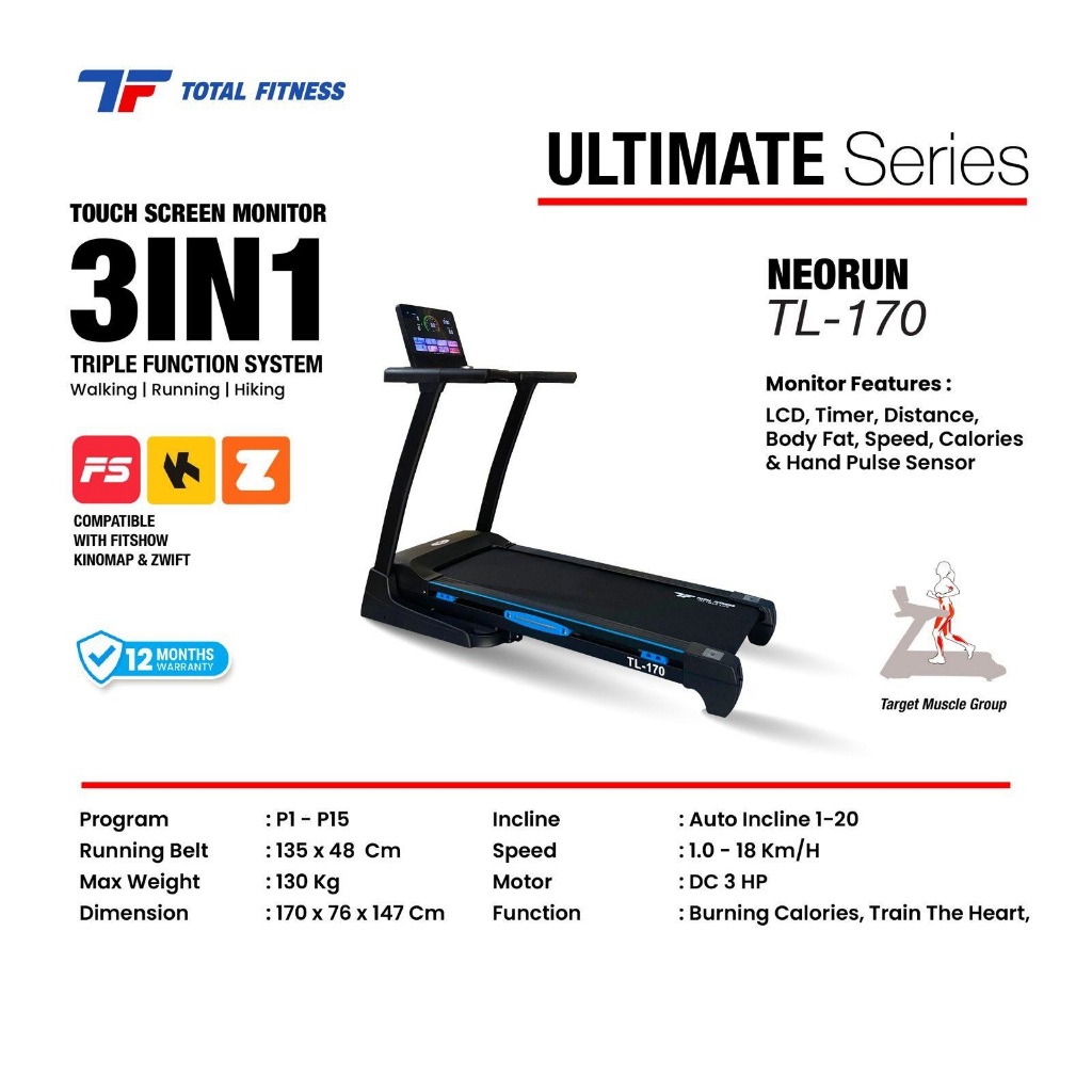 TOTAL - New Alat Olahraga Fitness Walking Pad Treadmill Listrik Elektrik Total TL 170 Auto Incline