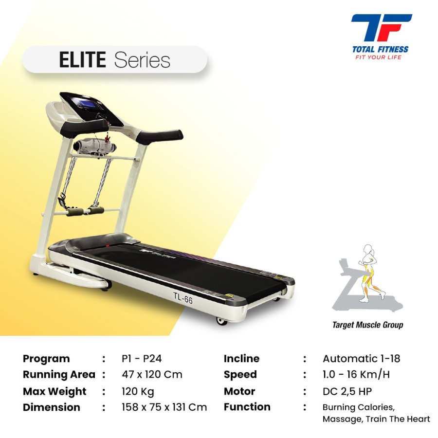 TOTAL - New Alat Olahraga Gym Fitness Treadmill Listrik Elektrik Total TL 66 Auto Incline