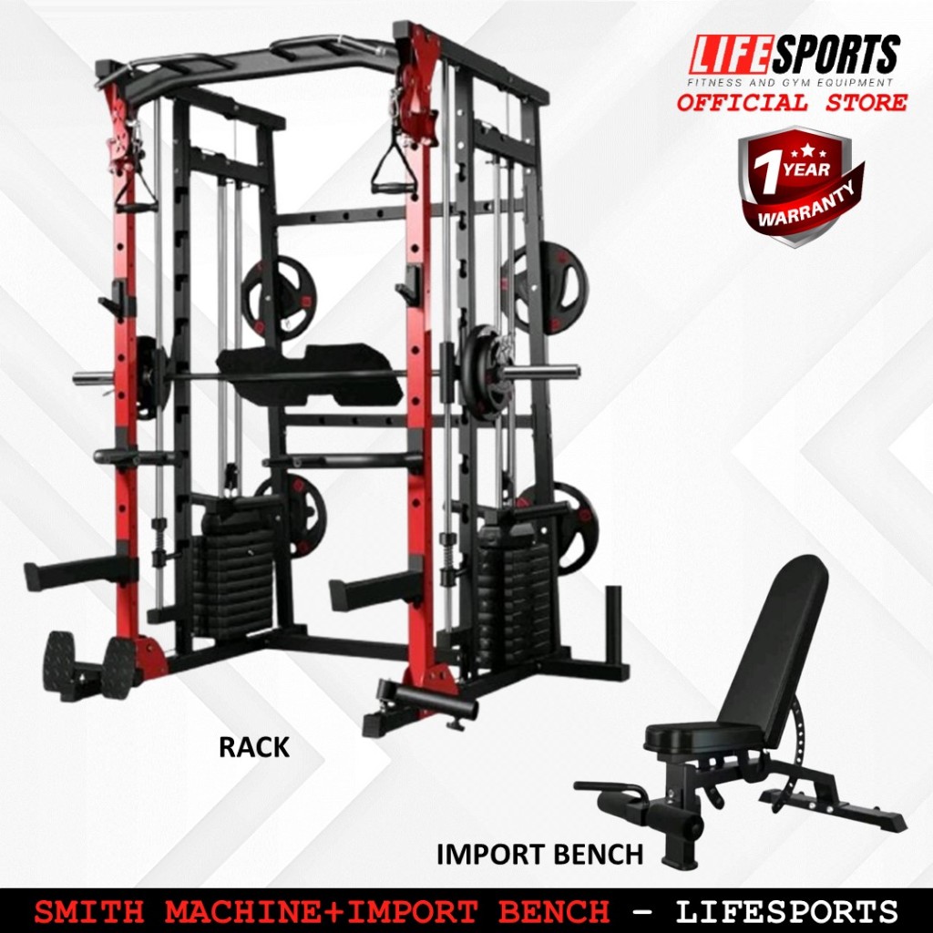 LIFESPORTS - New Alat Olahraga Fitness Gym Smith Machine Plus Leg Press Cable Crossover LS M200
