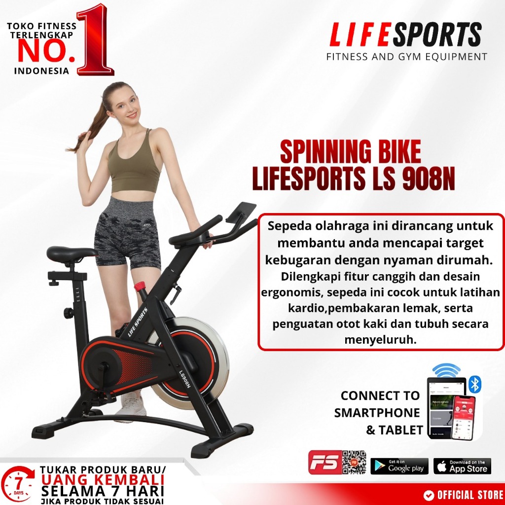 Lifesports - New Alat Olahraga Gym Sepeda Statis Fitness Smart Spinning Bike LS 908 N Indoor Cycling