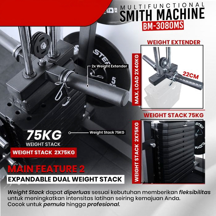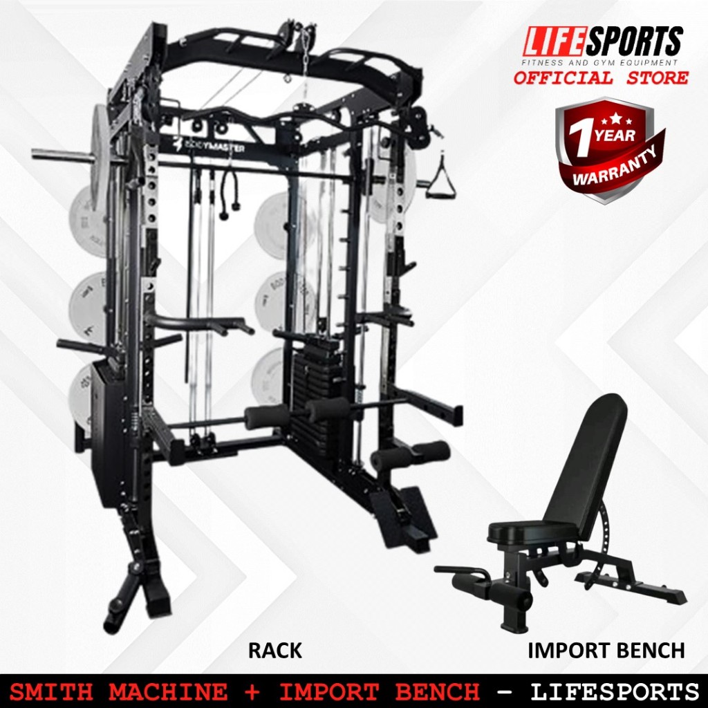 Lifesports - New Alat Olahraga Fitness Gym All In One Rack Smith Machine BM 3080 Plus Bench & Plate