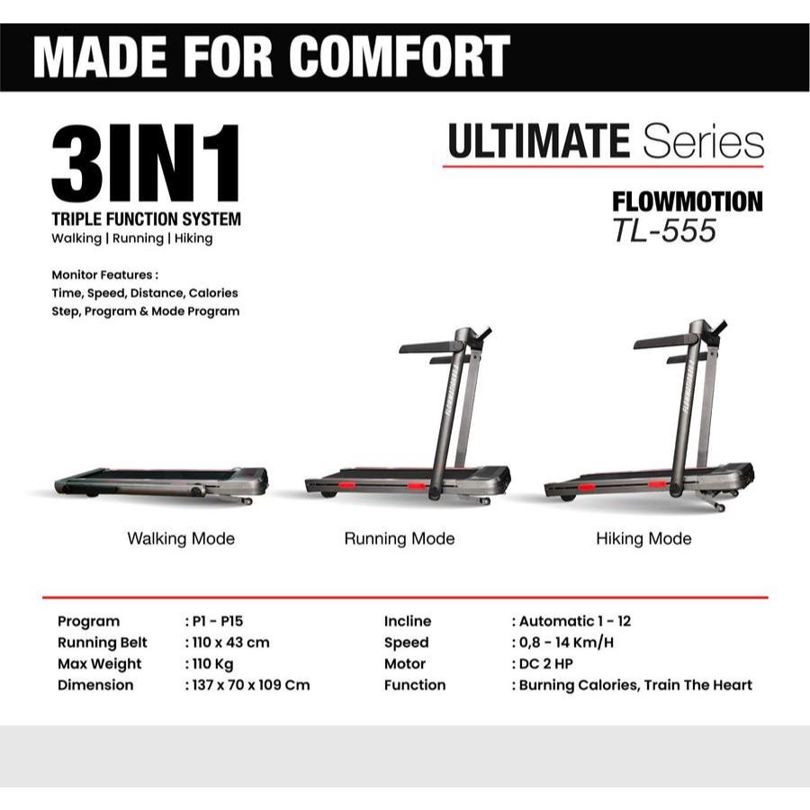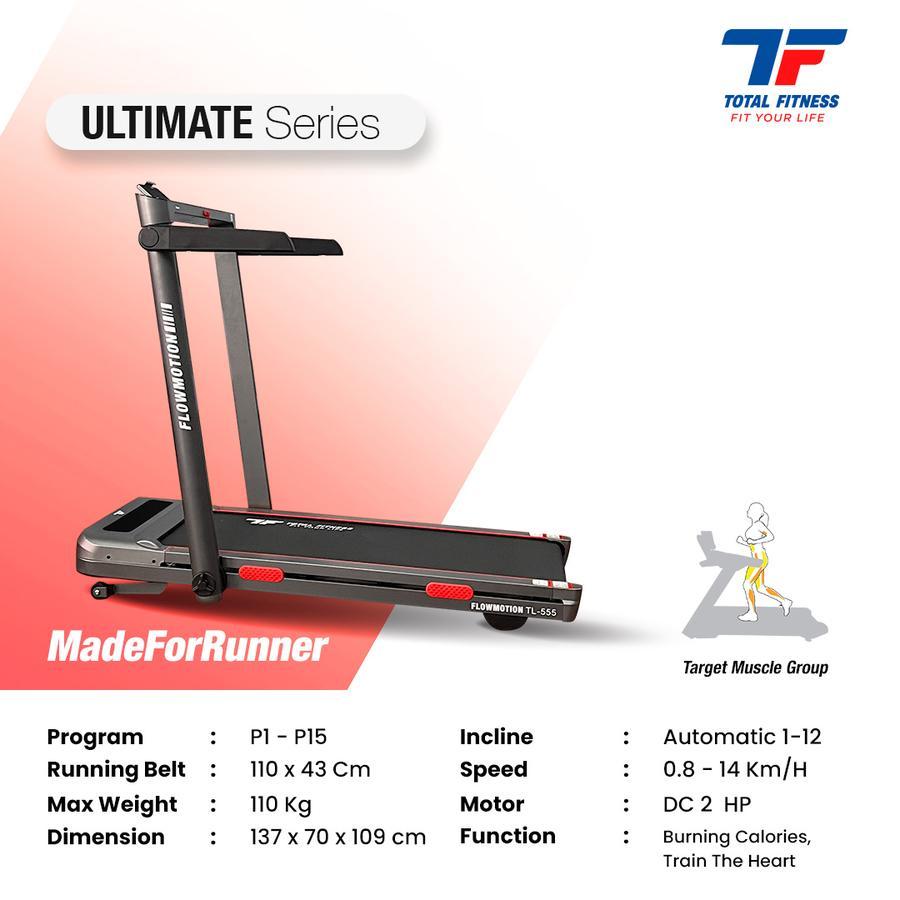 TOTAL - New Alat Olahraga Gym Fitness Treadmill Elektrik Walking Pad Total TL 555 Auto Incline
