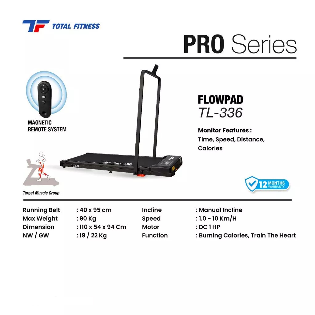 TOTAL - New Alat Olahraga Gym Fitness Treadmill Elektrik Walking Pad Total TL 336 Pro Series
